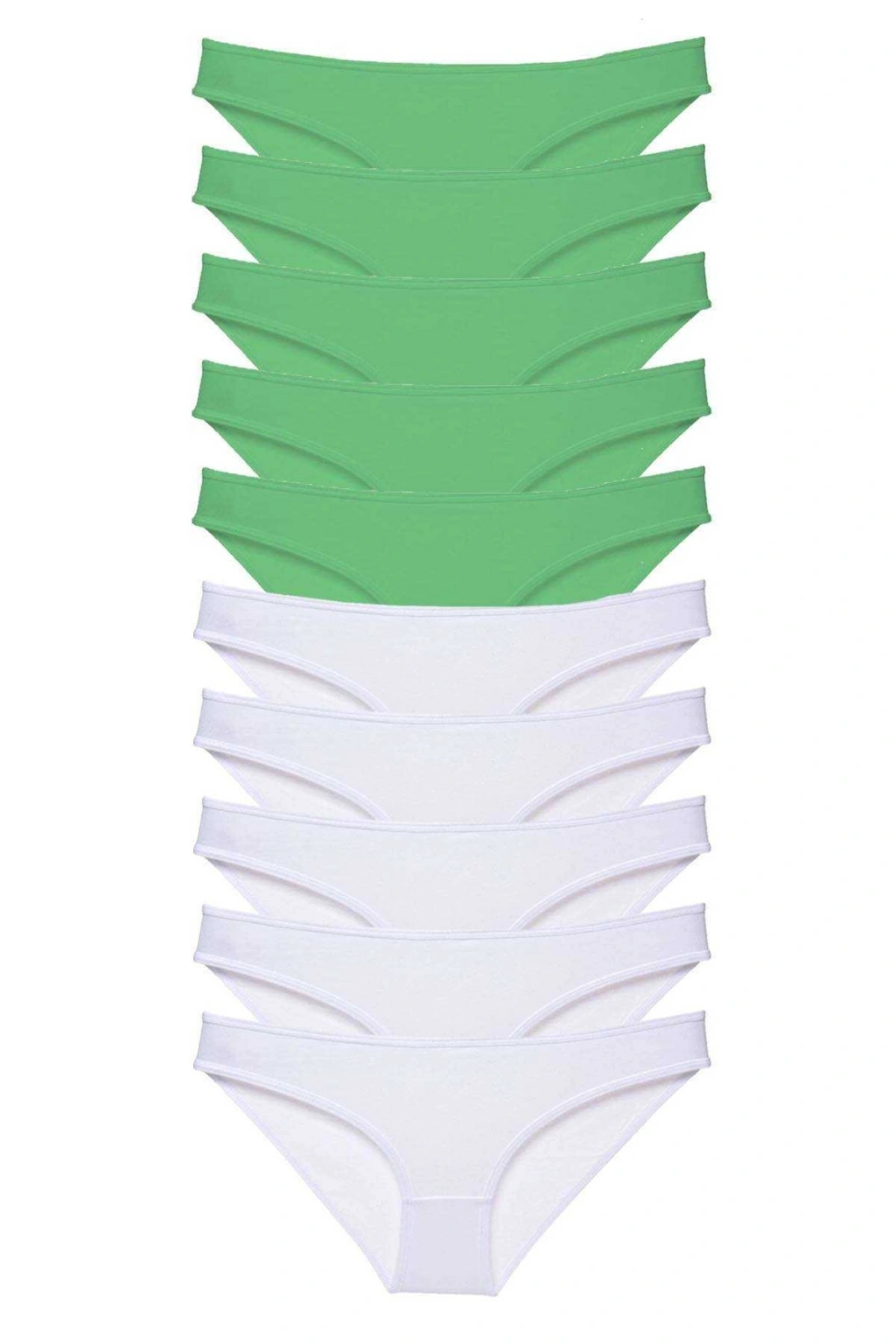 10 adet Eko Set Likralı Kadın Slip Külot Yeşil Beyaz