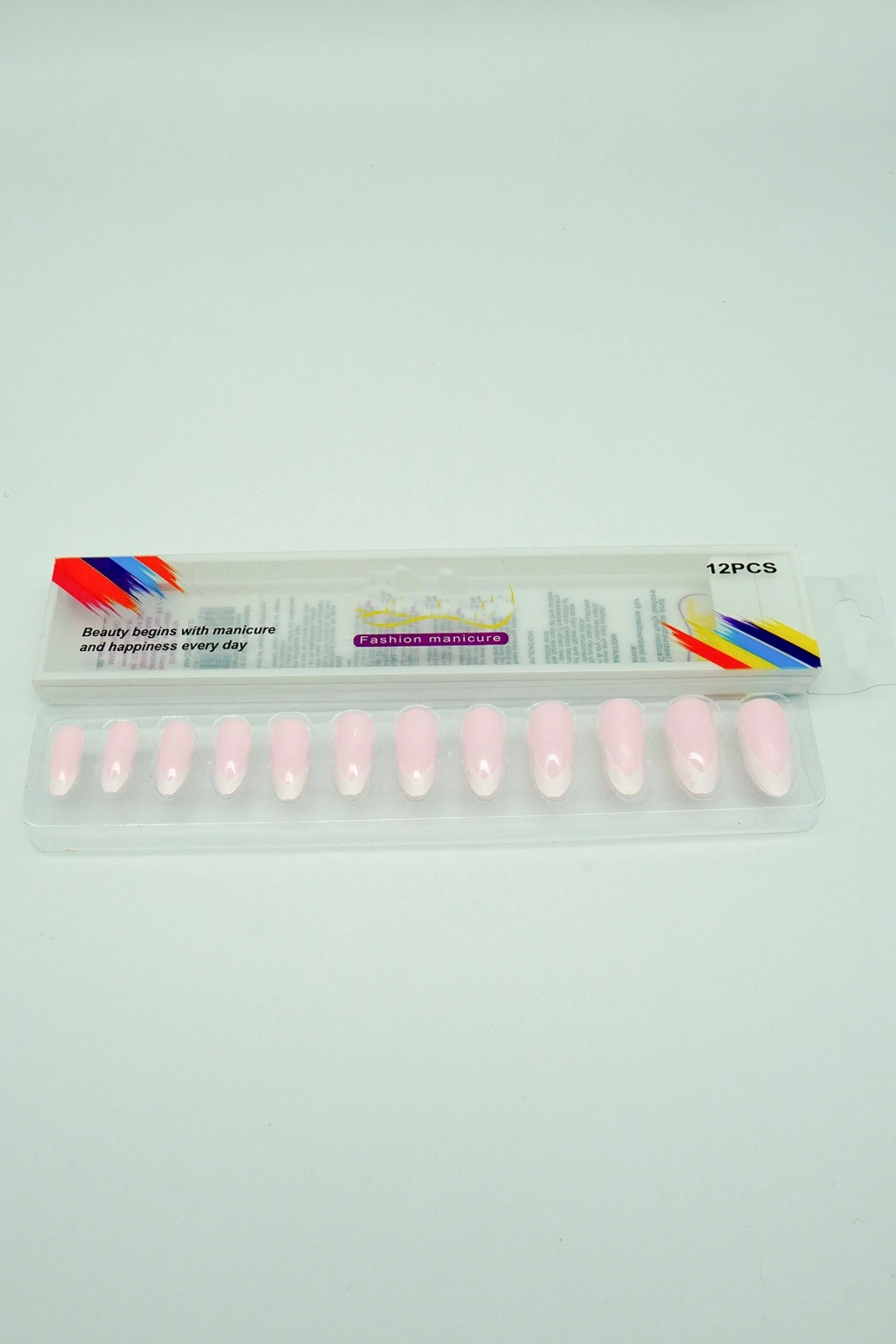 12 Adet Badem Tırnak Tak Ve Çık Kendinden Yapışkanlı Takma Tırnak Pembe