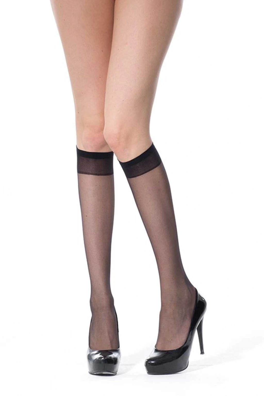 Fit 15 Burunsuz Parlak Kadın Pantolon Diz Altı Çorabı Siyah
