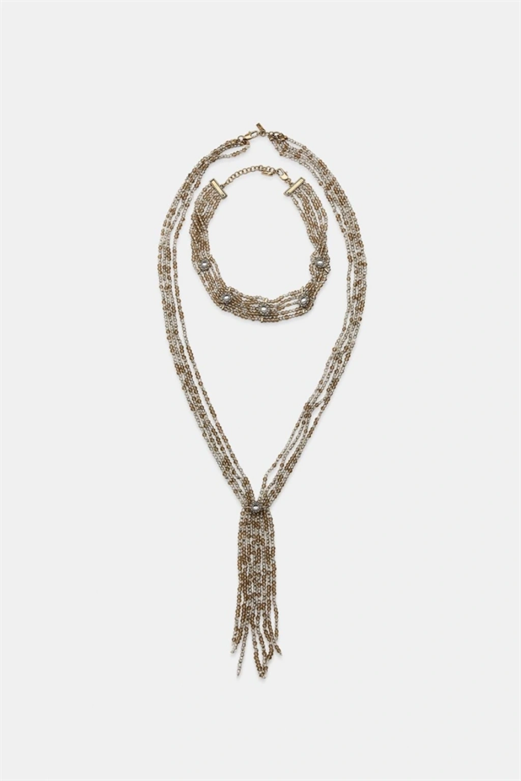 2'li Boncuklu Gerdanlık Kolye - Kahverengi
