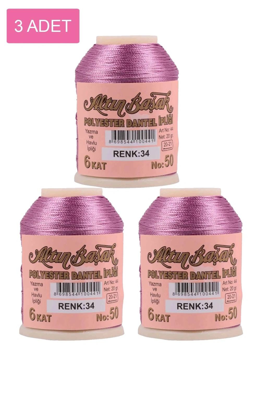 3 Adet Altınbaşak Oya ve Dantel İpi 20 gr - Royaleks - No: 034