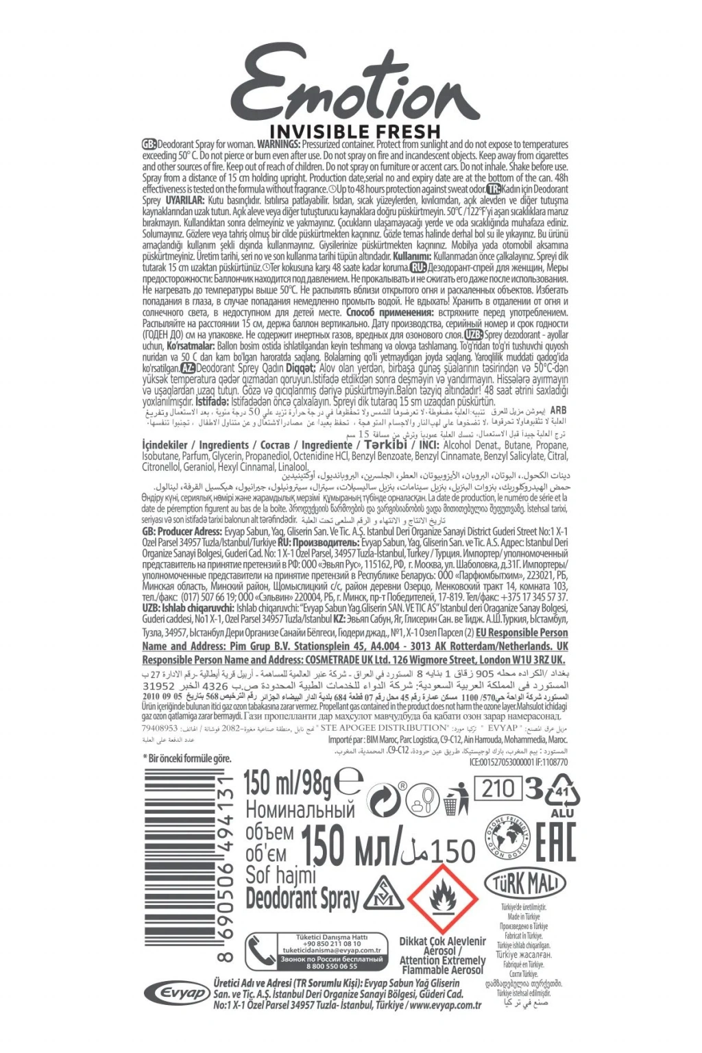 Emotion Invisible Fresh Alüminyum içermeyen ve vücudun terleme dengesini etkilemeden 48 saat koruma