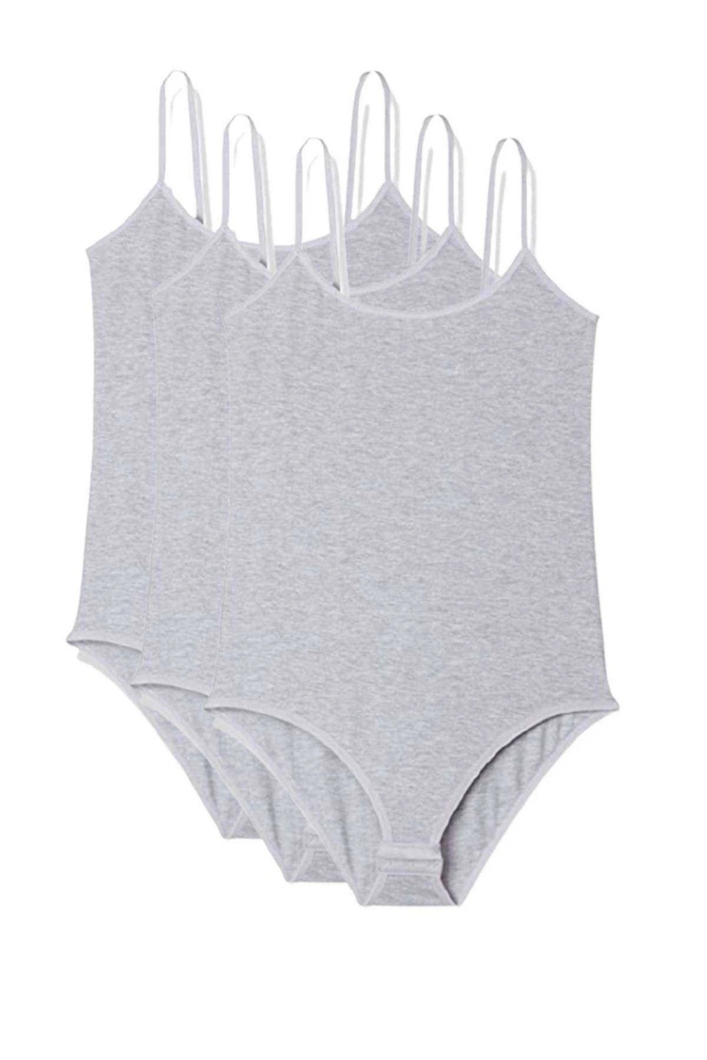 3 Adet İp Askılı Kadın Çıtçıtlı Body Gri