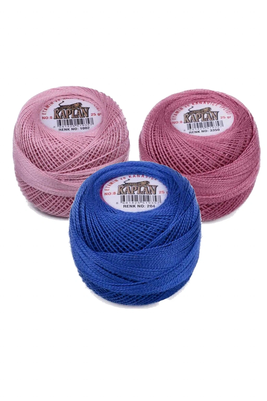 3 Adet Kaplan Etamin Ve Kanaviçe İpi 8 No Kod/Renk: 1002 - 3350 - 204 - Ryl