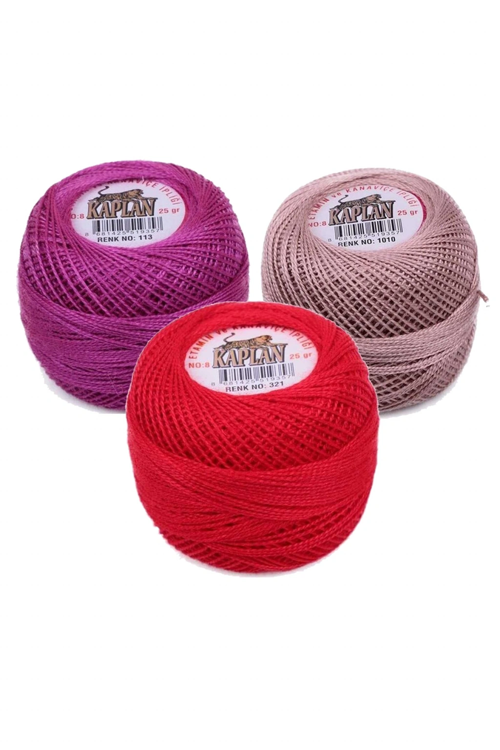 3 Adet Kaplan Etamin Ve Kanaviçe İpi 8 No Kod/Renk: 1016 - 319 - 580 - Ryl