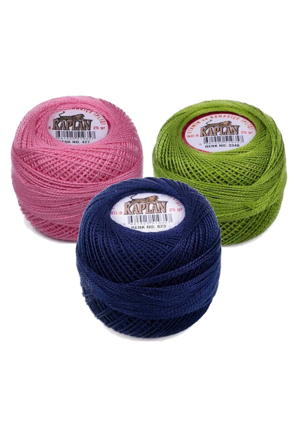 3 Adet Kaplan Etamin Ve Kanaviçe İpi 8 No Kod/Renk: 444 - 316 - 498 - Ryl