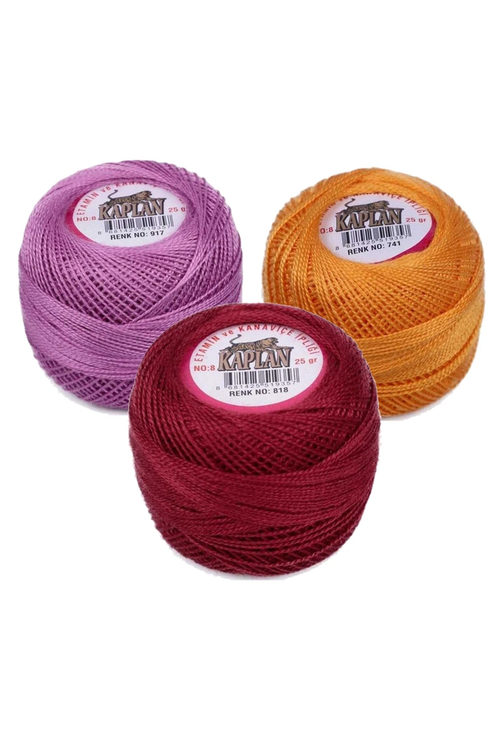 3 Adet Kaplan Etamin Ve Kanaviçe İpi 8 No Kod/Renk: 917 - 741 - 818 - Ryl