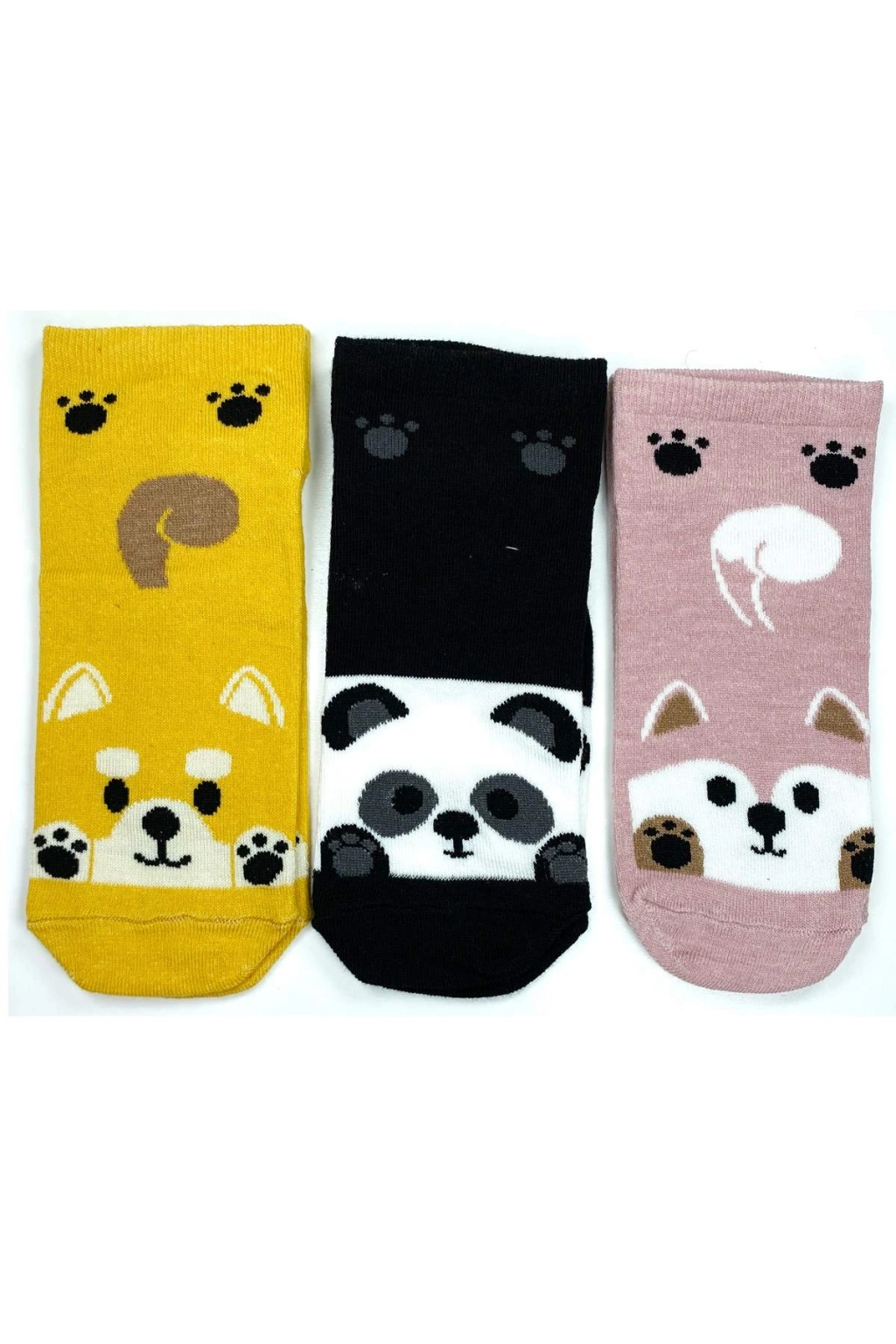 3 Çift Sevimli Hayvan Baskılı Pamuklu Kadın Bilek Çorap Hayvanseverler için pati temalı kadın çoraplarımız pamuklu ve nefes alabilir özelliği ile ayağınızda modayı yakalayın. Pamuklu özelliği ile ter çekme özelliği vardır. Nefes alan dokusu ile ayağınızda yokmuş hissi vererek gün boyu kuru hissettirir. Topuk ve burun desteği ile sağlamdır ve yıkama talimatlarına uyulduğunda uzun yıllar kullanabilirsiniz. Royaleks ailesi olarak mutlu günlerde kullanmanızı temenni ederiz. Paket içeriği: 3 Çift Sevimli Hayvan Baskılı Pamuklu Kadın Bilek Çorap