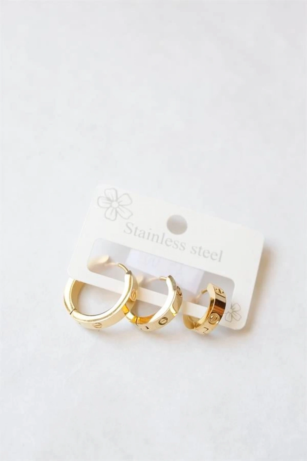3'lü Taşsız Çelik Halka Küpe - Altın