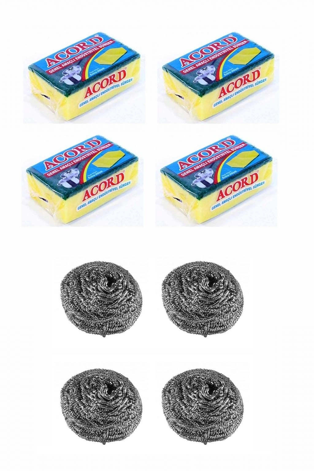 4 Adet Endüstriyel Bulaşık Teli ve 4 Adet Endüstriyel Çok Amaçlı Bulaşık Süngeri Seti