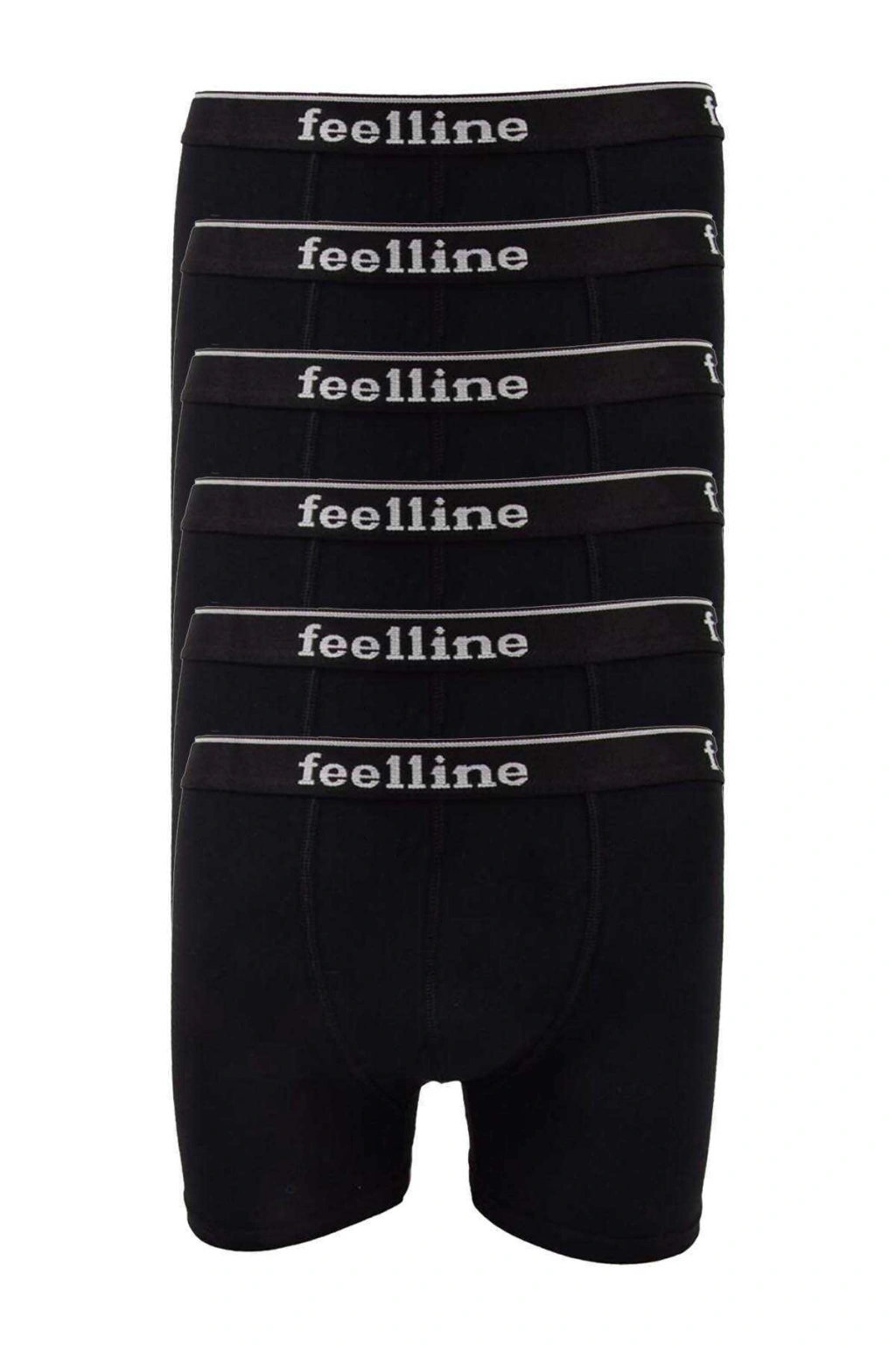 6 adet Feelline Siyah Pamuklu Doğal Likralı Erkek Boxer