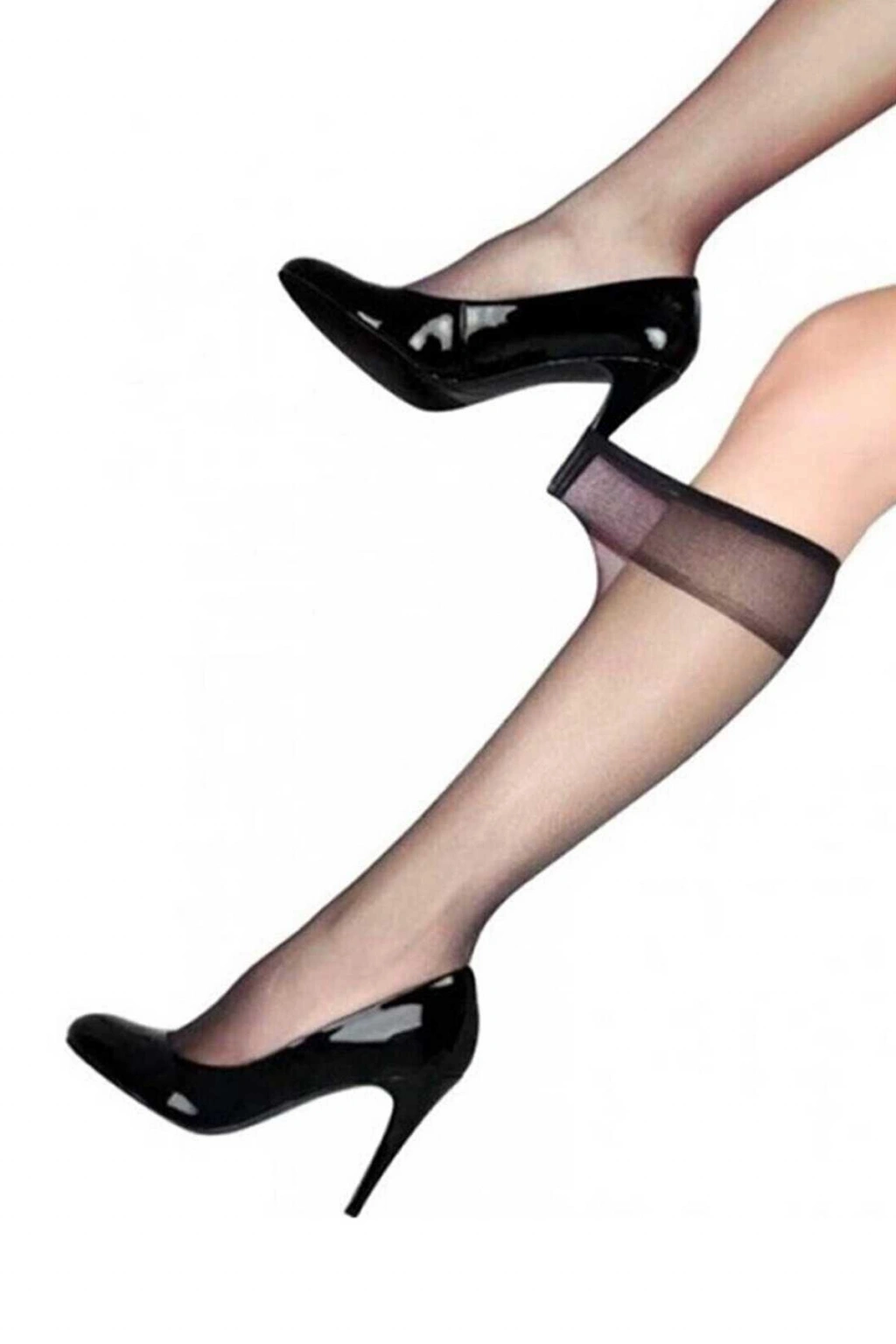 12 Adet Parlak Dizaltı Kadın Çorap 15 Denye Siyah 500