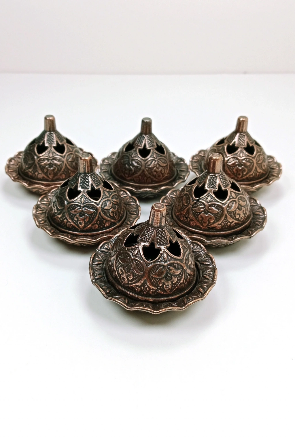 6 Lı Mini Eskitme Osmanlı Temalı Koyu Renk Lokumluk Sunum