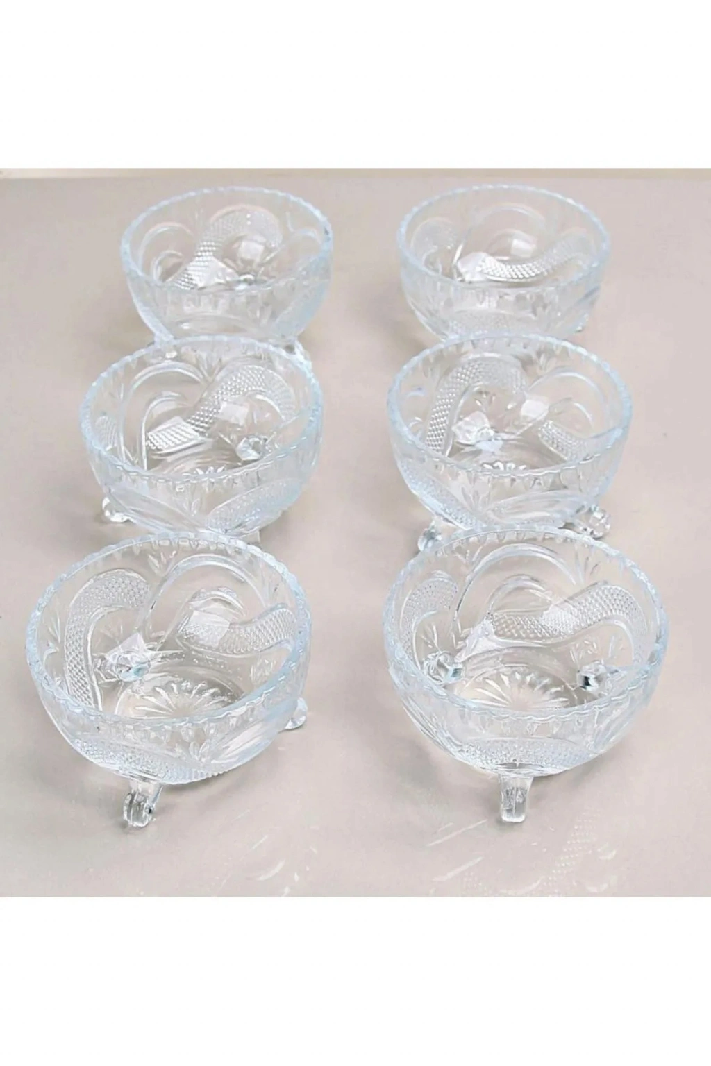 6 Parça 3 ayaklı cam kase takımı