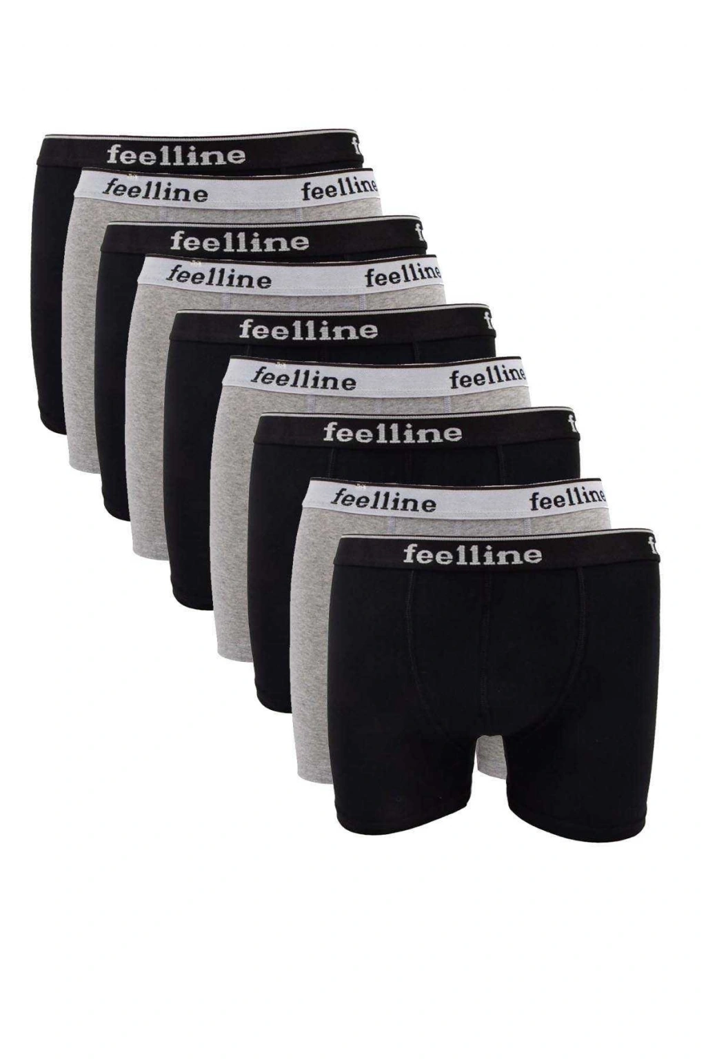 • 9 adet Feelline Siyah ve Gri Pamuklu Doğal Likralı Erkek Boxer