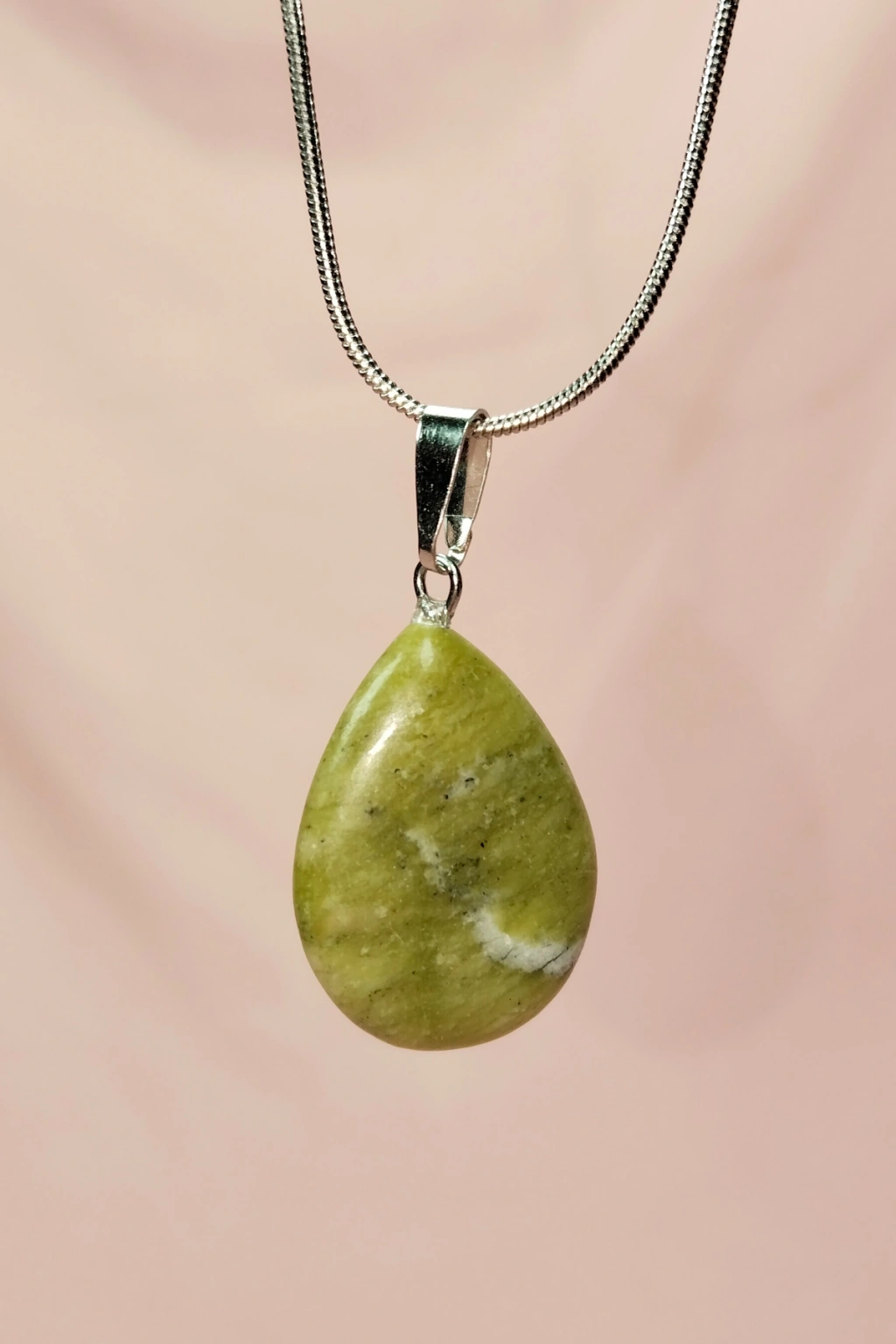 Yeşim Doğal Taşı Zincirli El Yapımı Tasarımlı Kolye Uç: 3,5 cm Zincir: 20 cm Kutulu