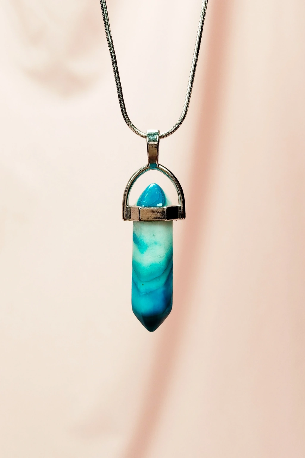Akuamarin Doğal Taşı Zincirli El Yapımı Kolye Uç: 3 cm Zincir: 20 cm Kutulu
