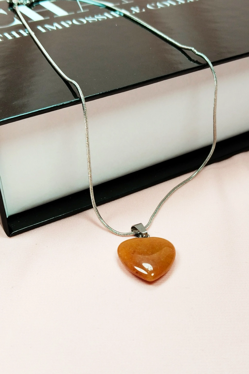 Pembe Akit Doğal Taşı Zincirli El Yapımı Tasarımlı Kolye Uç: 3,5 cm Zincir: 20 cm Kutulu