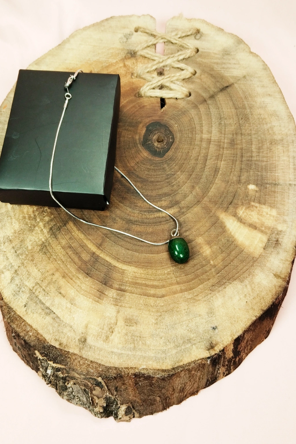 Yeşim Doğal Taşı Zincirli El Yapımı Tasarımlı Kolye Uç: 3,5 cm Zincir: 20 cm Kutulu