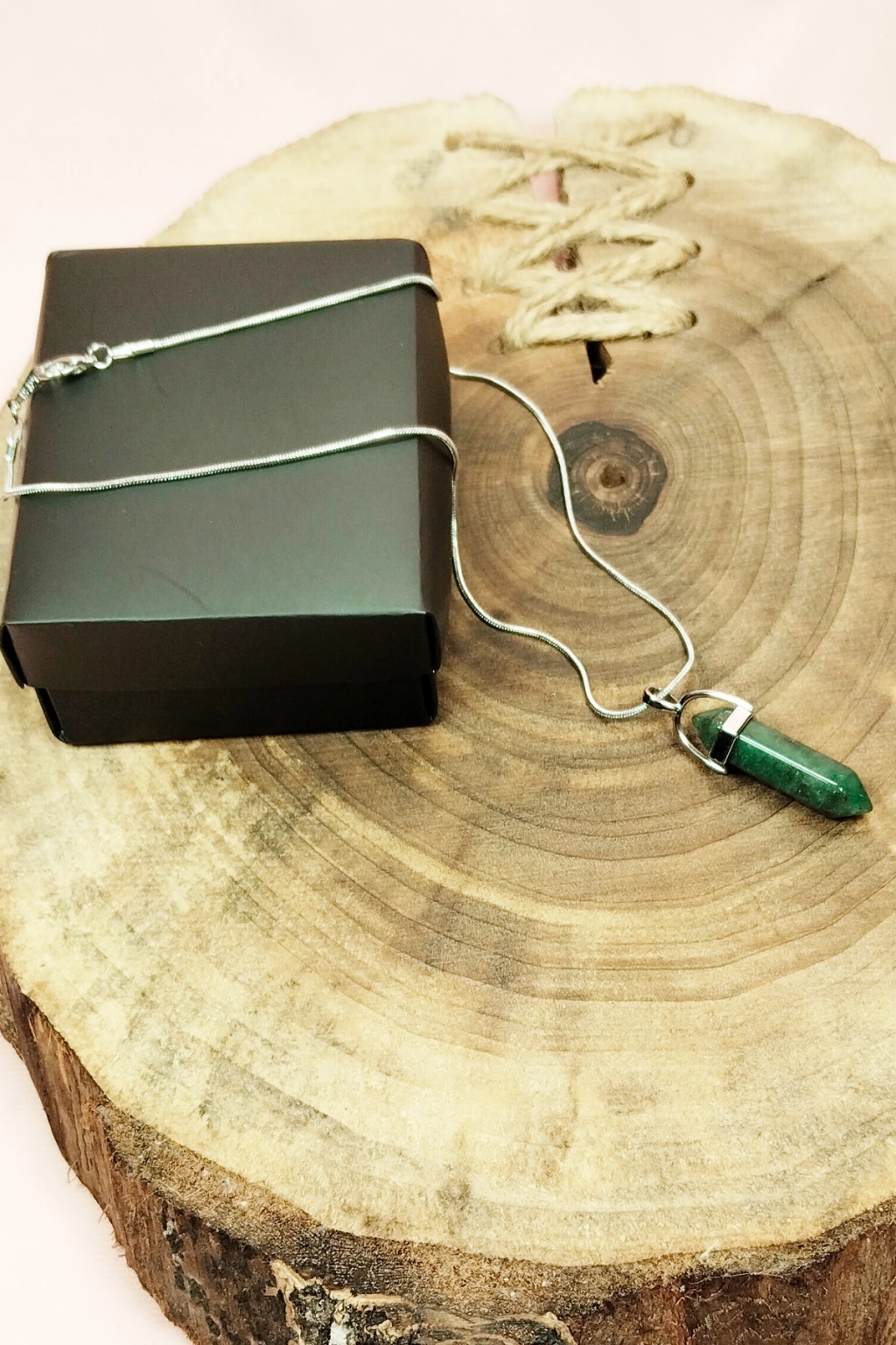 Yeşil Kuvars Doğal Taşı Zincirli El Yapımı Tasarımlı Kolye Uç: 3,5 cm Zincir: 20 cm Kutulu