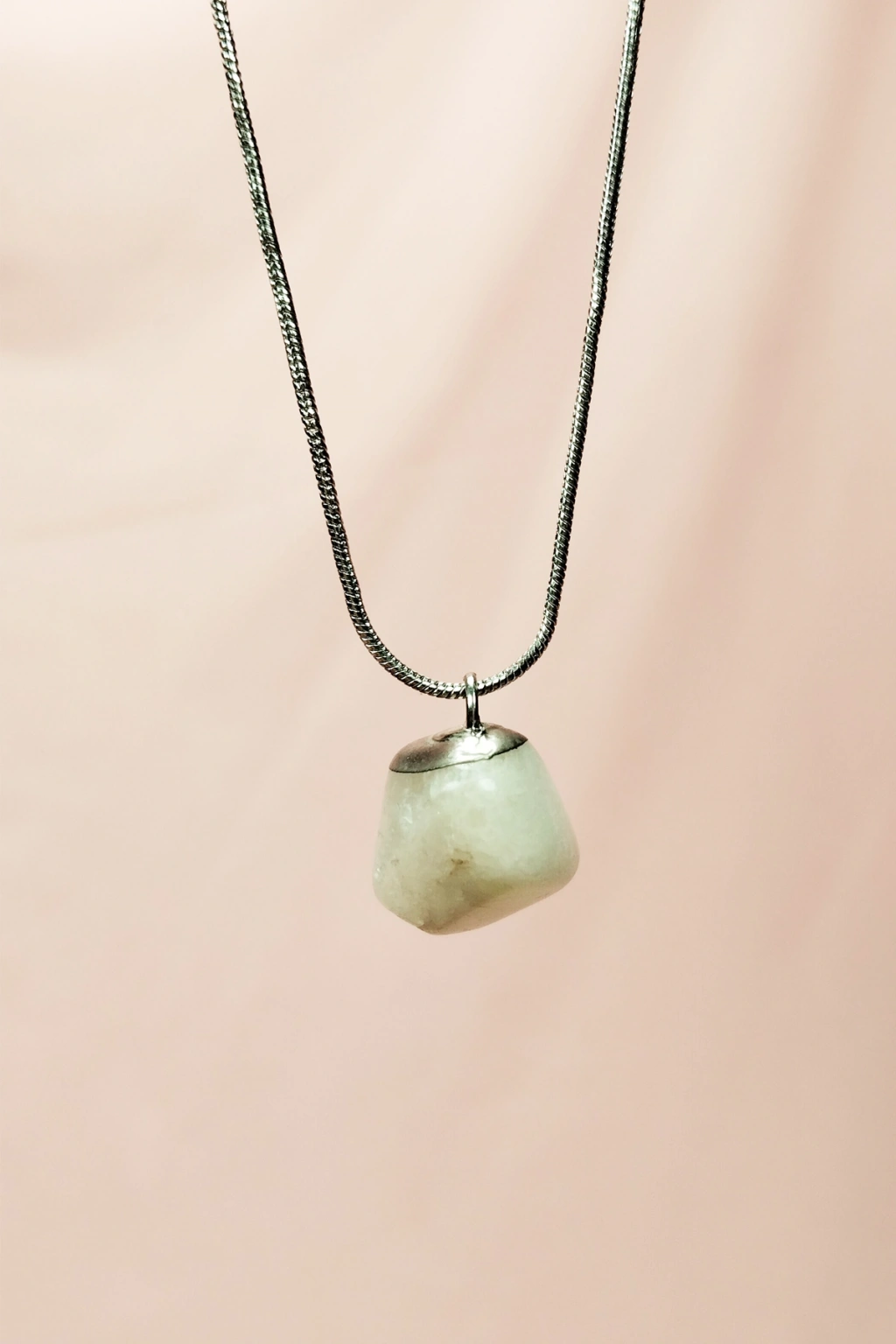 Yeşil Kuvars Doğal Taşı Zincirli El Yapımı Tasarımlı Kolye Uç: 3,5 cm Zincir: 20 cm Kutulu