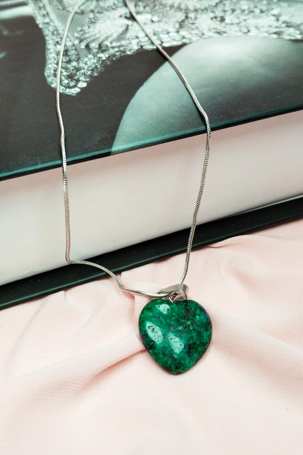 Yeşim Doğal Taşı Zincirli El Yapımı Tasarımlı Kolye Uç: 3,5 cm Zincir: 20 cm Kutulu