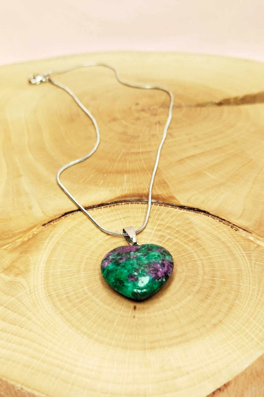 Pembe Akit Doğal Taşı Zincirli El Yapımı Tasarımlı Kolye Uç: 3,5 cm Zincir: 20 cm Kutulu