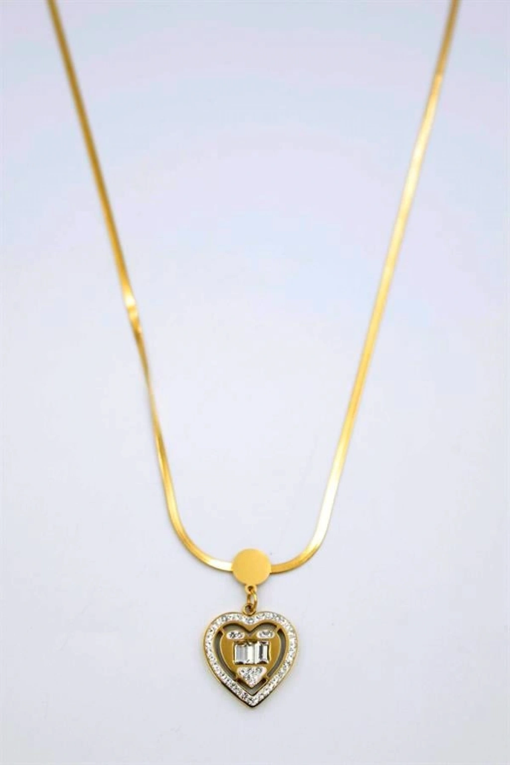 Baget Taşlı Kalp Kolye - Altın
