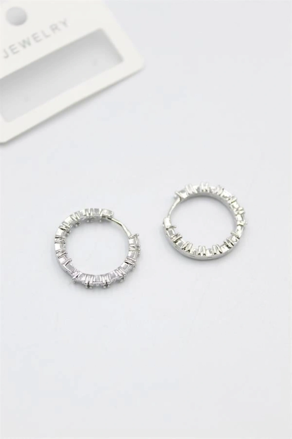Baget Taşlı Küpe - Beyaz