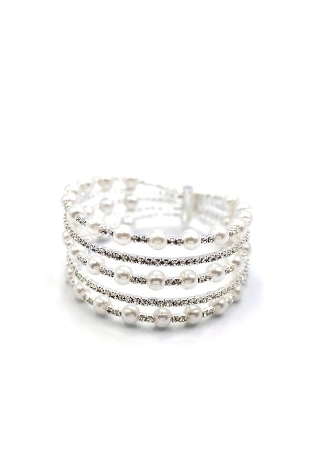 • Beş Sıra İncili Su Yolu Bileklik - Gümüş