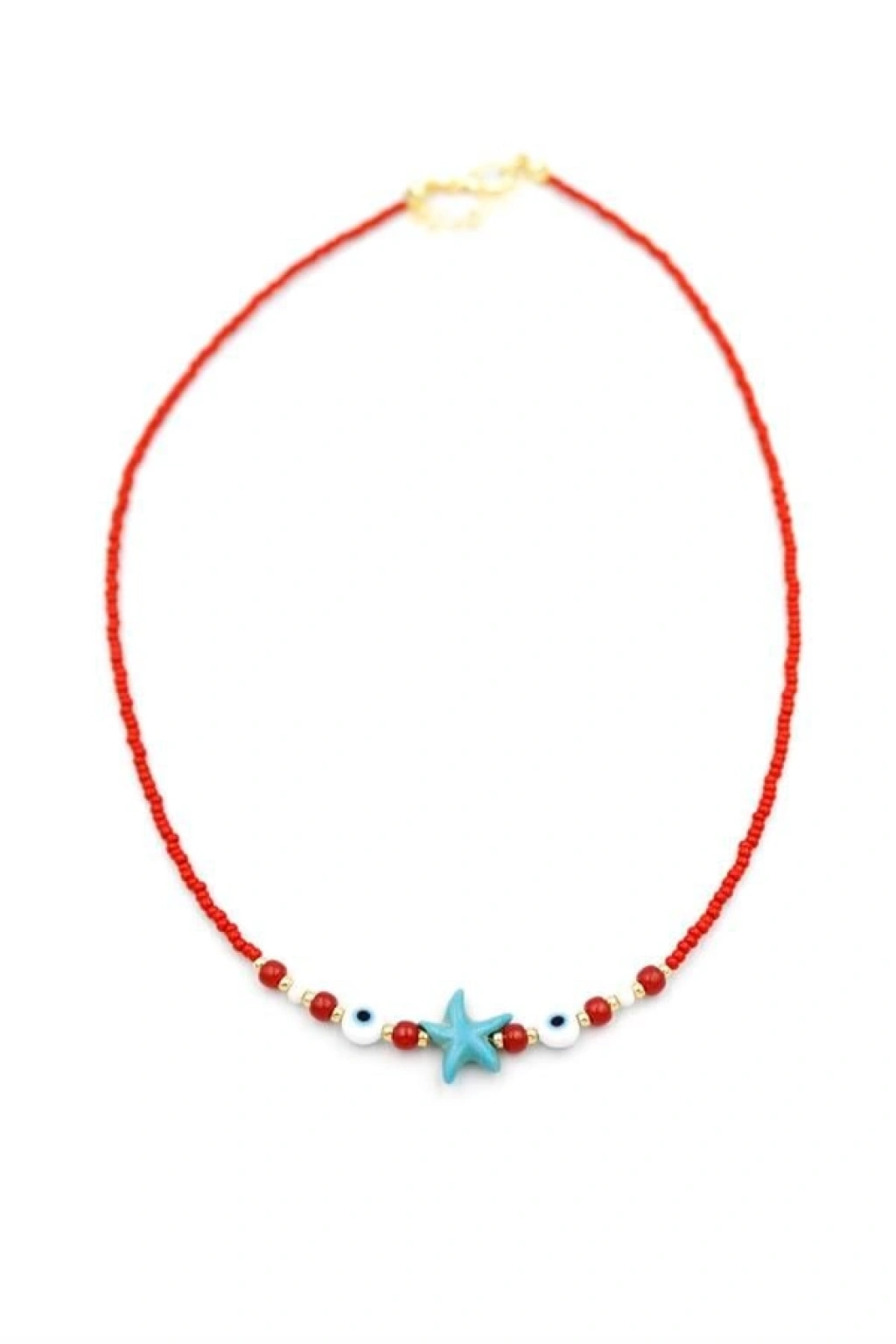 Boncuk Deniz Yıldzı Kolye - Kırmızı