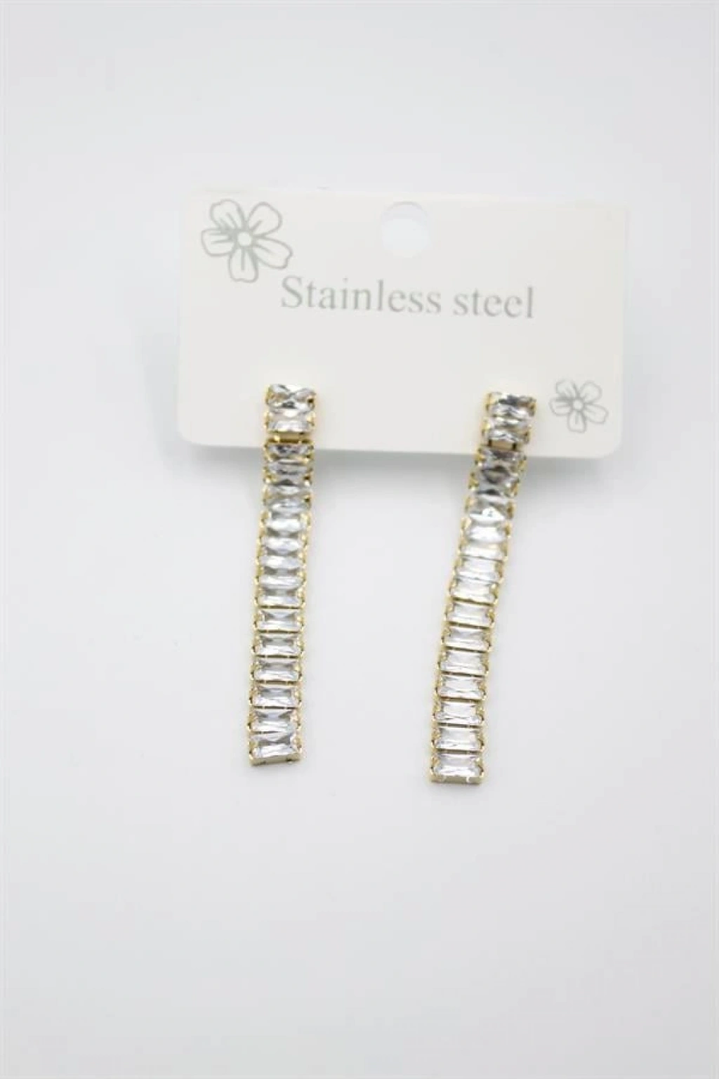 Büyük Baget Taşlı Çelik Küpe - Altın