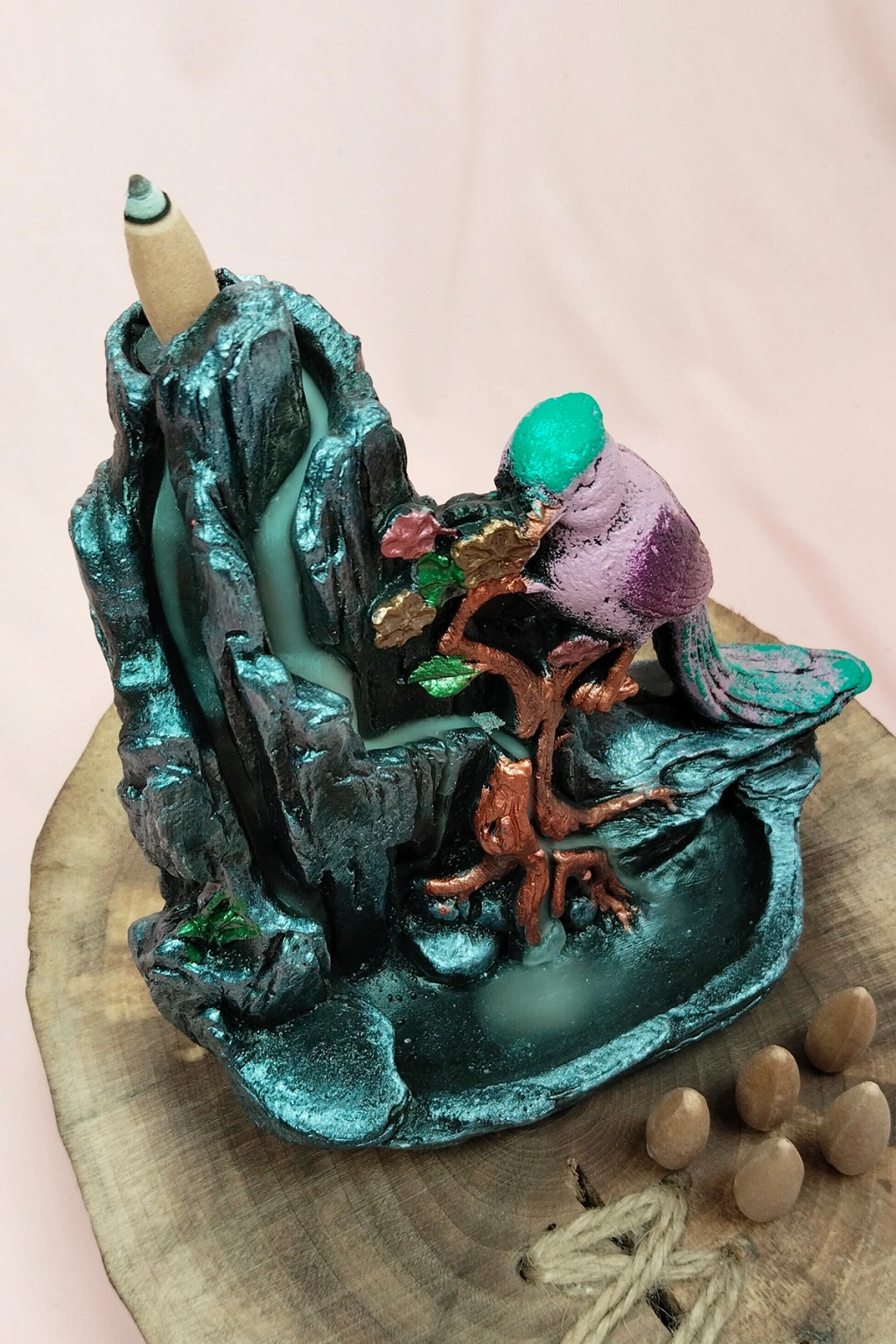 Buyuk Boy Kuş Figürlü Biblo Model Geri Akış Şelale Tütsülük 5 Adet Koni Hediye