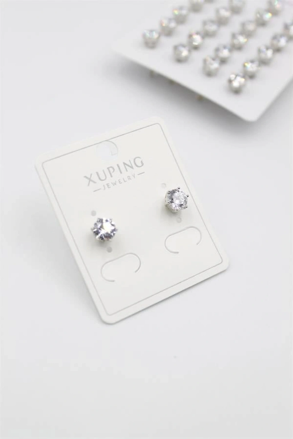 Büyük Boy Zirkon Taşlı Tektaş Küpe - Gümüş