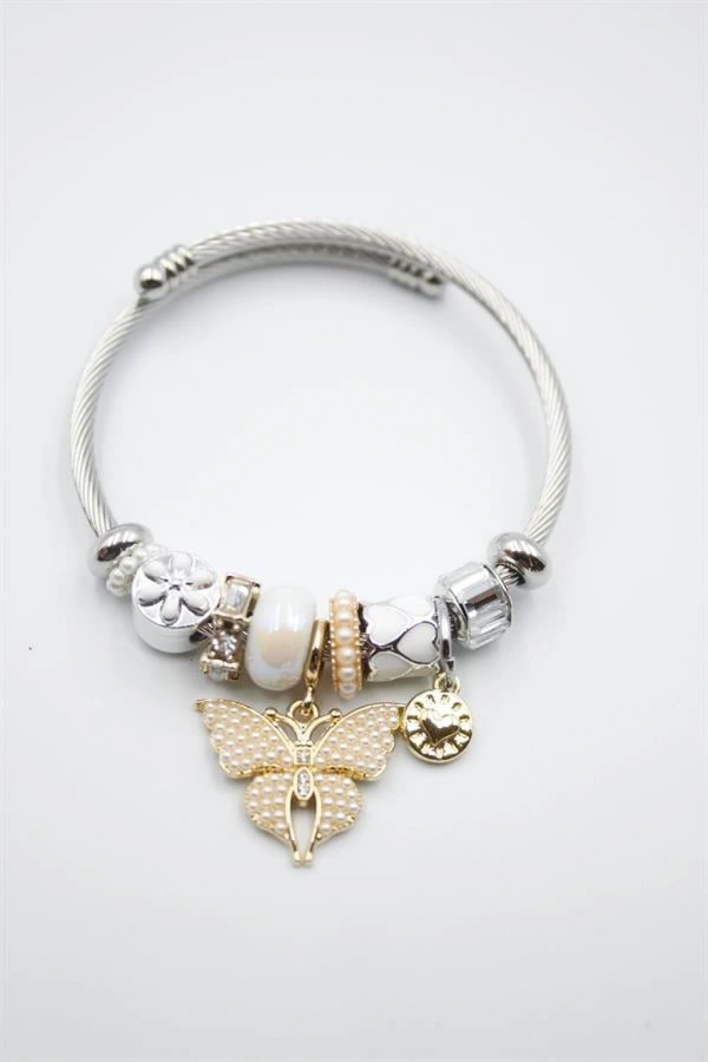 Çelik Charmlı Kelebek Bileklik - Beyaz