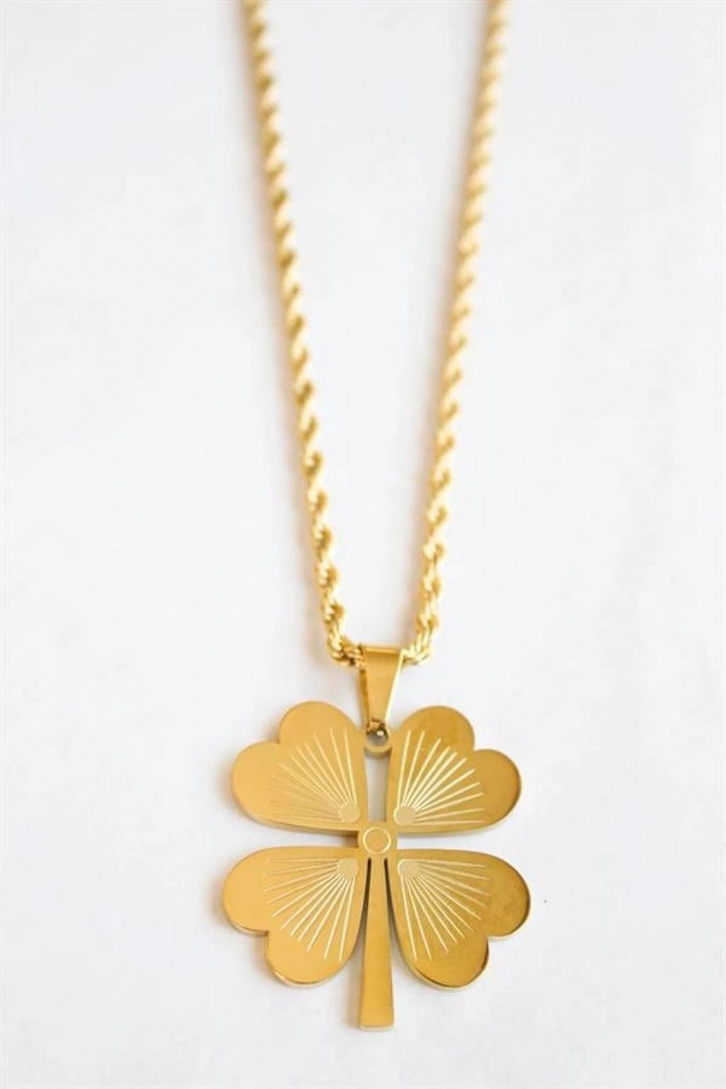 Çelik Yonca Kolye - Altın