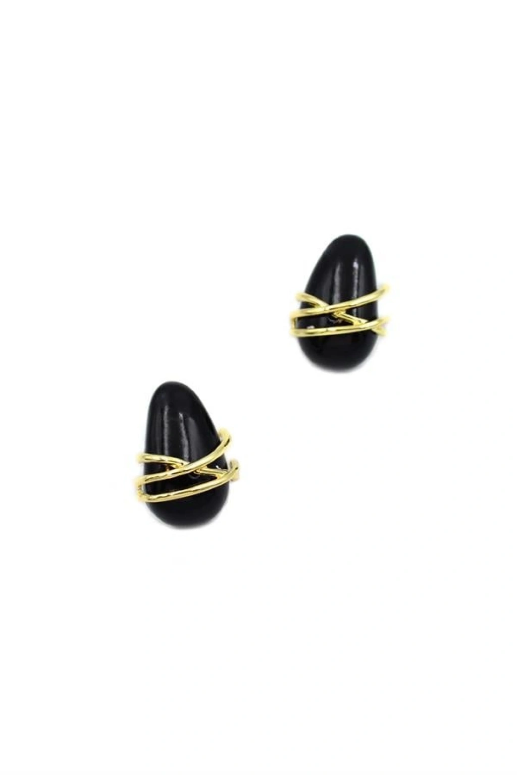 Çizgili Damla Küpe - Siyah