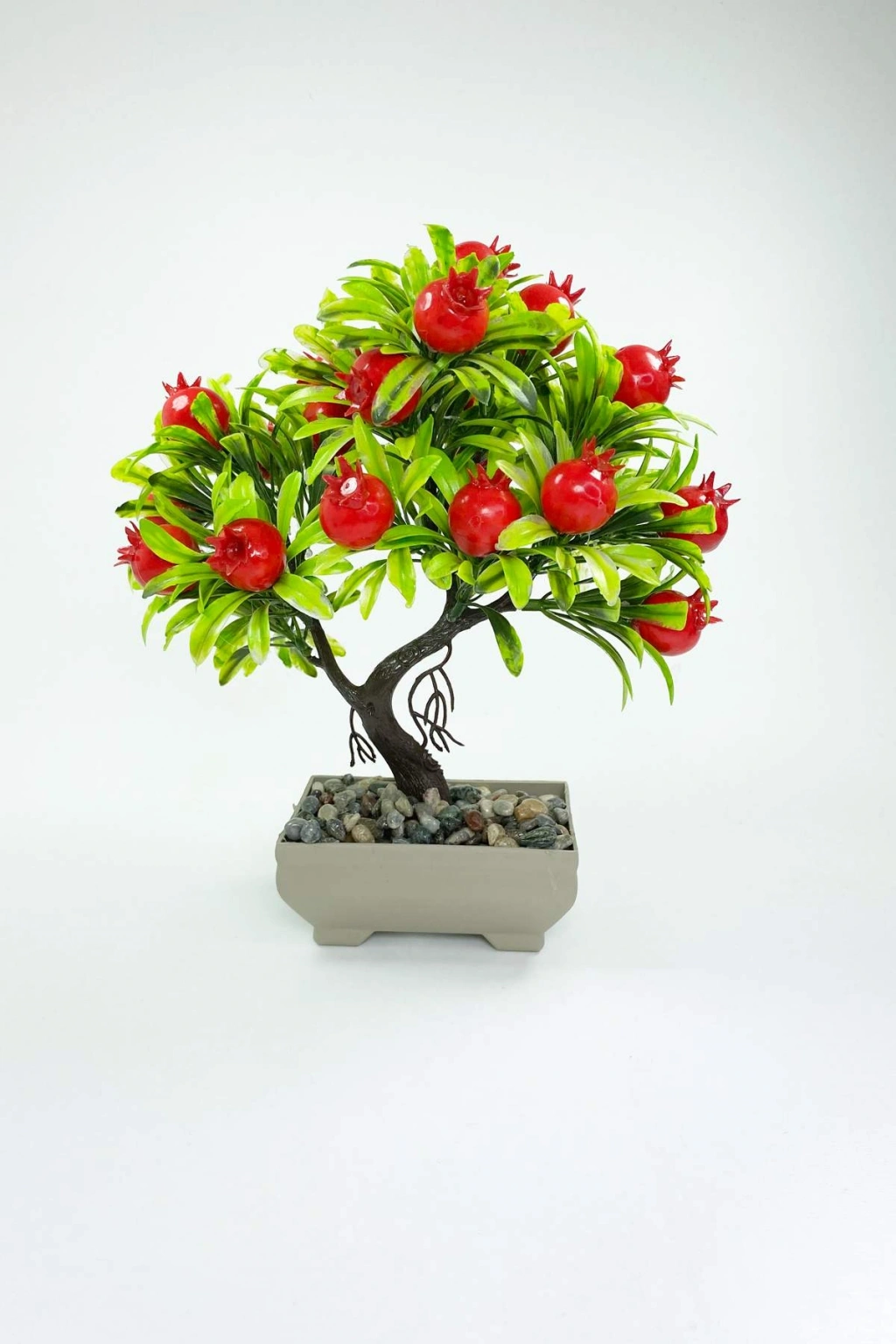 Dekor Ağaç Bereket Nar Ağacı Saksılı Dekoratif Ağaç Biblo 24x13 cm