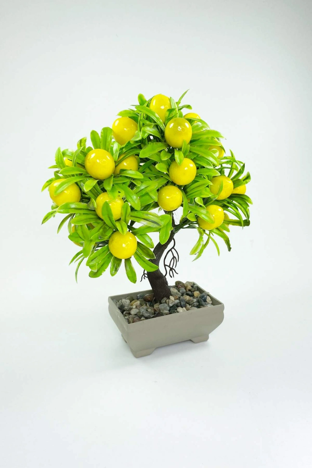 Dekor Ağaç Limon Ağacı Saksılı Dekoratif Ağaç Biblo 24x13 cm