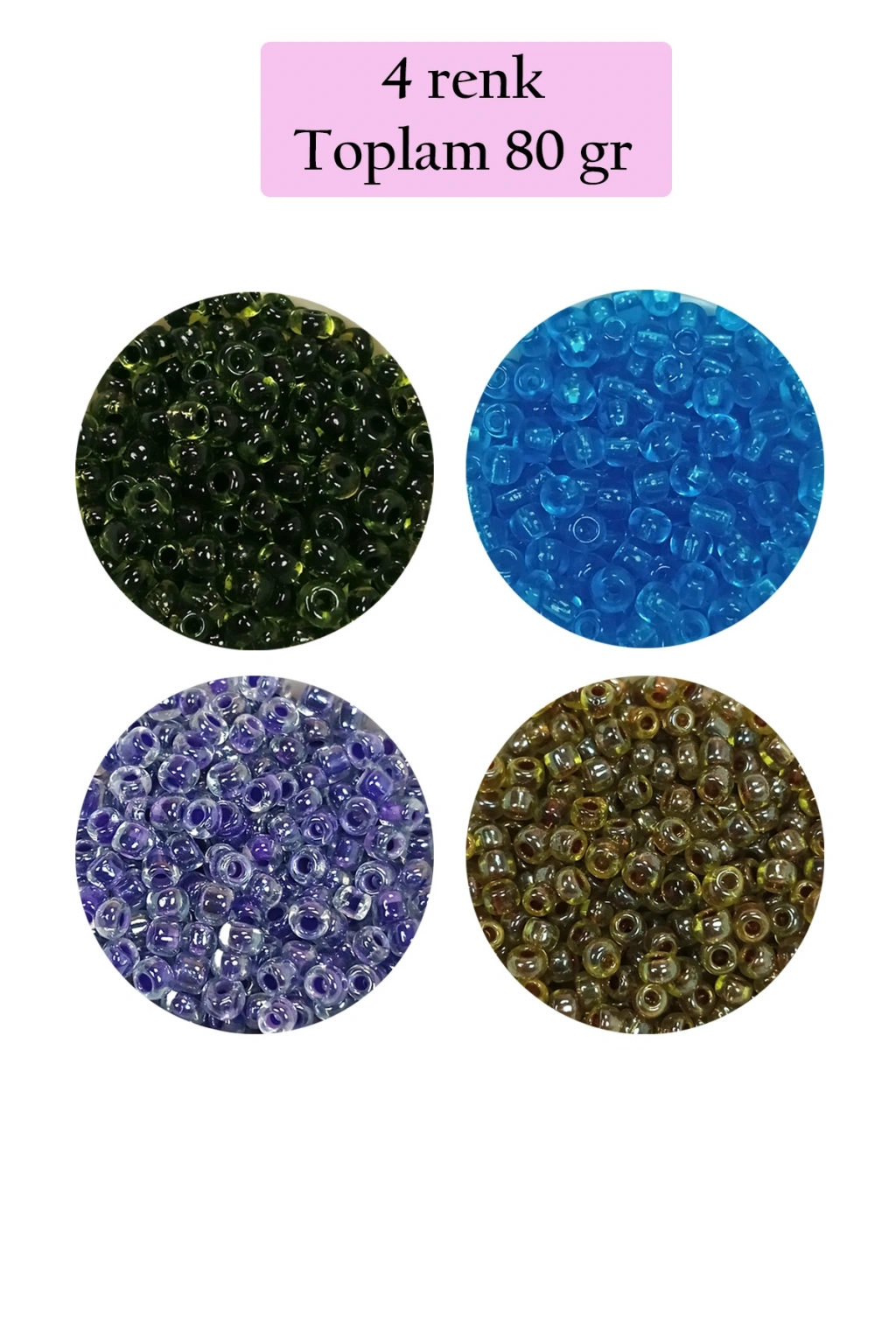 | Dökme Cam Kum Boncuk (8/0) 3 mm - 4 Renk - Toplam 80 Gram - BNC425 Renkler : Şeffaf Yeşil Siyah - Şeffaf Deniz Mavi - Şeffaf Mor Beyaz - Yeşil Siyah Renk ve malzeme testinden geçirilmiş olup , cilt için tammen zararsız malzemelerden imal edilmiştir. İncelemiş olduğunuz kum boncuklar 3 mm çapındadır. incelemiş olduğunuz kum boncukların ismi 8/0 olarak bilinir. 1 paket 3 mm 8/0 kum boncuk 4 Renk toplam 80 gramdır. Dökme kum boncuklar kolye, bileklik, küpe, aksesuar yapımında ve el işi oya ve örgülerde kullanılmaktadır. |