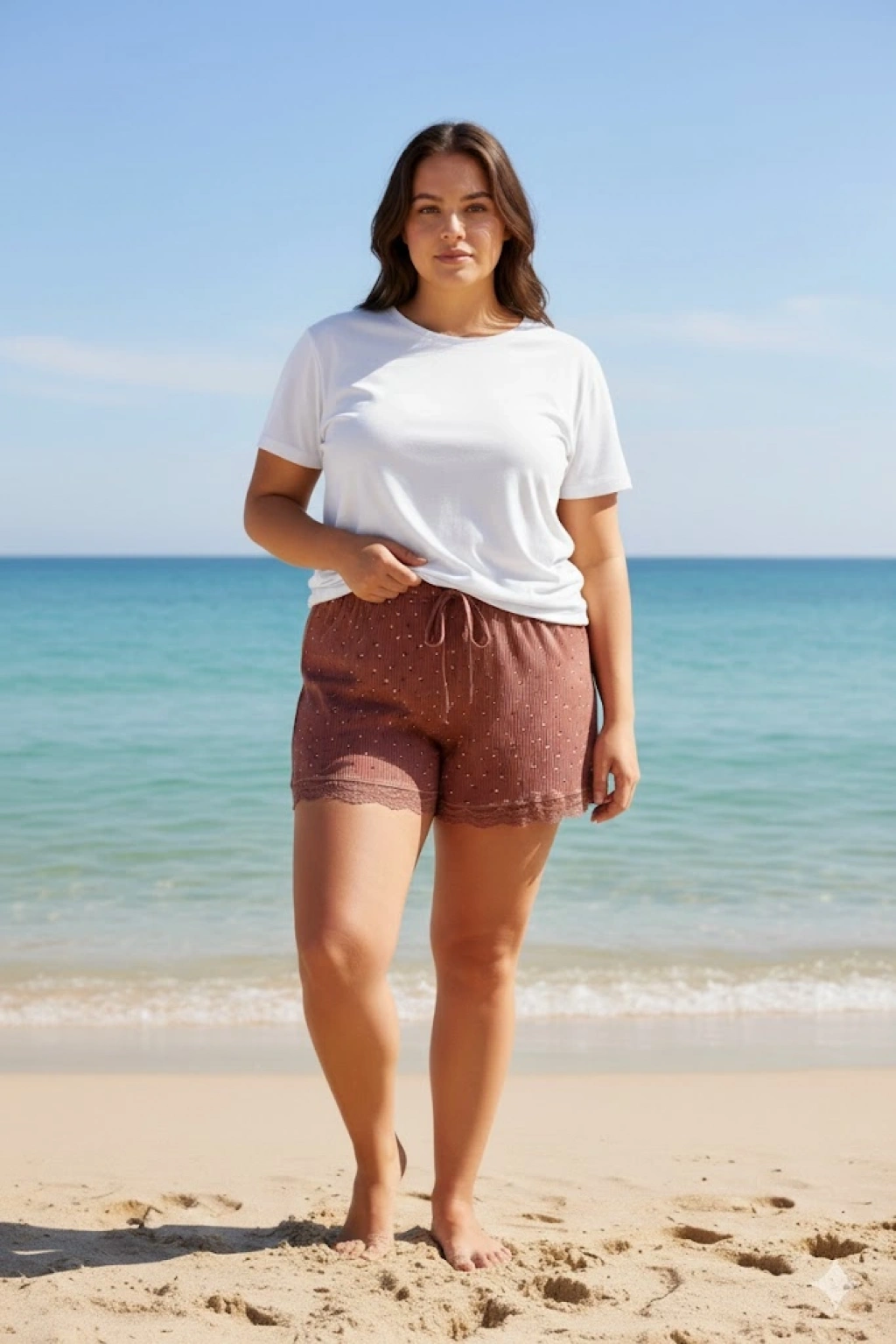 Bambu Fitilli Kadın Ev Şortu Bacak Dantel Detaylı Ev Giyim Koyu Taba