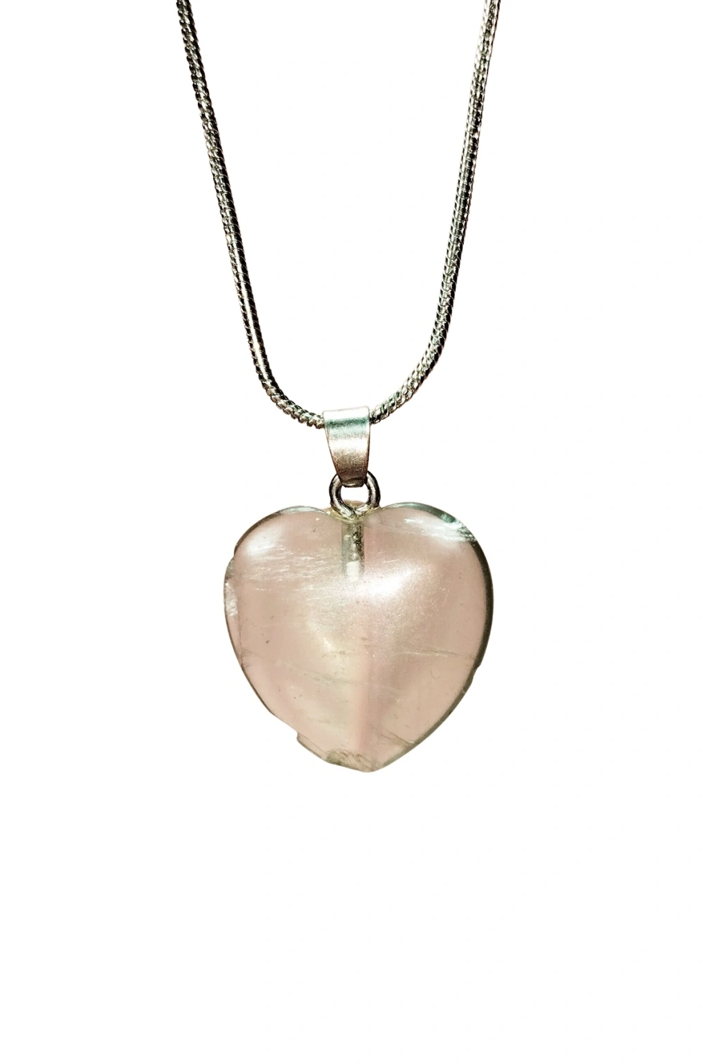 Pembe Kuvars Doğal Taşı Zincirli El Yapımı Tasarımlı Kolye Uç: 3,5 cm Zincir: 20 cm Kutulu