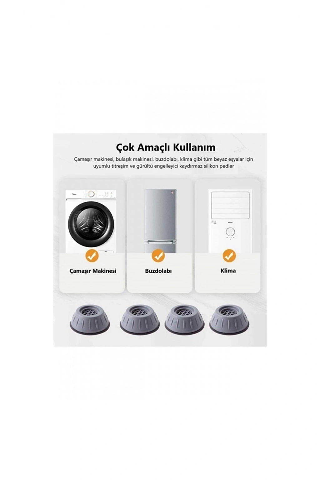 Çamaşır makinesi için anti-Titreşim pedi, gürültü emici, kaymaz, titreşim önleyici özel olarak tasarlanmıştır. Çamaşır makinesinde titreşim nedeniyle çamaşır makinesinin kaymasını etkili bir şekilde önleyebilir. Çamaşır makineleri ve katların bakım maliyetini azaltın Çamaşır makinesini 4 cm yükseltir ve altının kolay temizlemene bilmesine yardımcı olur. Masa ve sandalyelere uygulayın, kanepe, çamaşır makinesi, yatak, çay masası vb. Kullanım alanı vardır. Ürün boyutları: Yükseklik: 4 cm alt çapı : 8,8 cm paket içeriği: 1 adet çamaşır makinesi titreşim engelleyici kaydırmaz vantuzlu 4 lü stoper