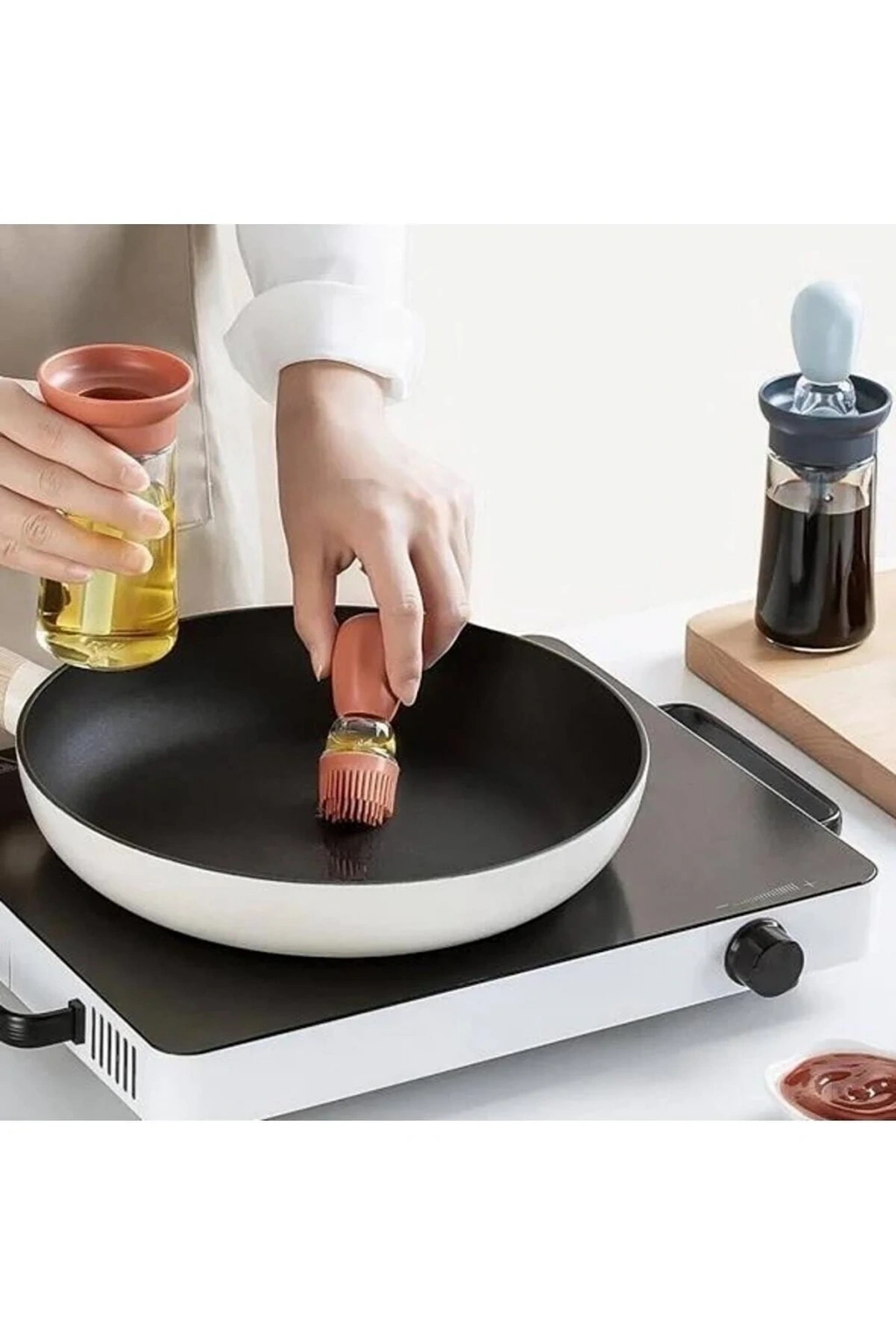 Hazneli Silikon Yağ Sos Ve Yumurta Fırçası Yağ Fırçası Yağlık Silikon Fırçalı Yağdanlık Royaleks-İND687 8697455586870