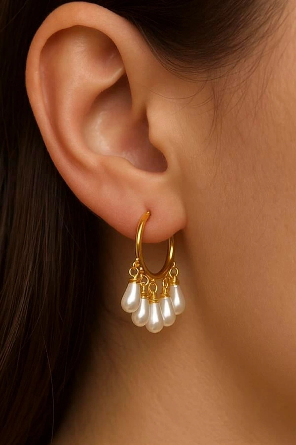 İnci Sallantılı Küpe - Altın