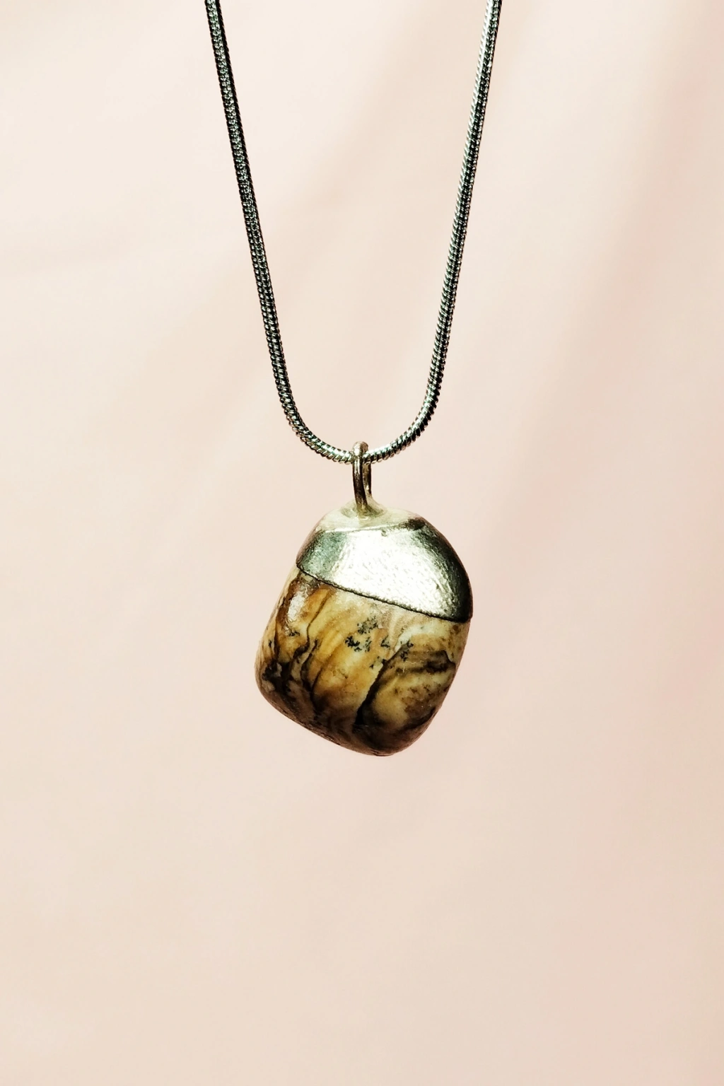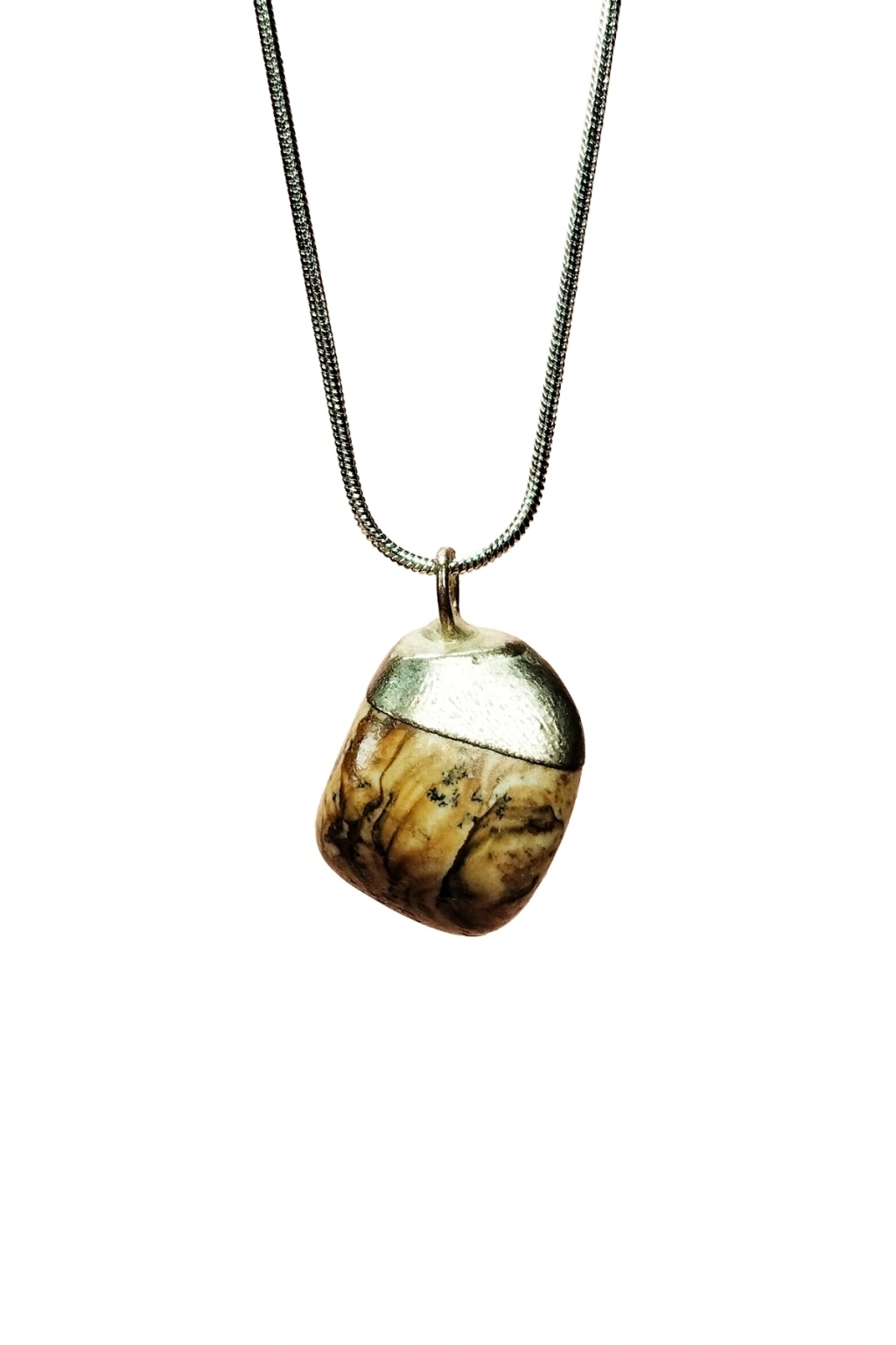 Unakit Doğal Taşı Zincirli El Yapımı Tasarımlı Kolye Uç: 3,5 cm Zincir: 20 cm Kutulu