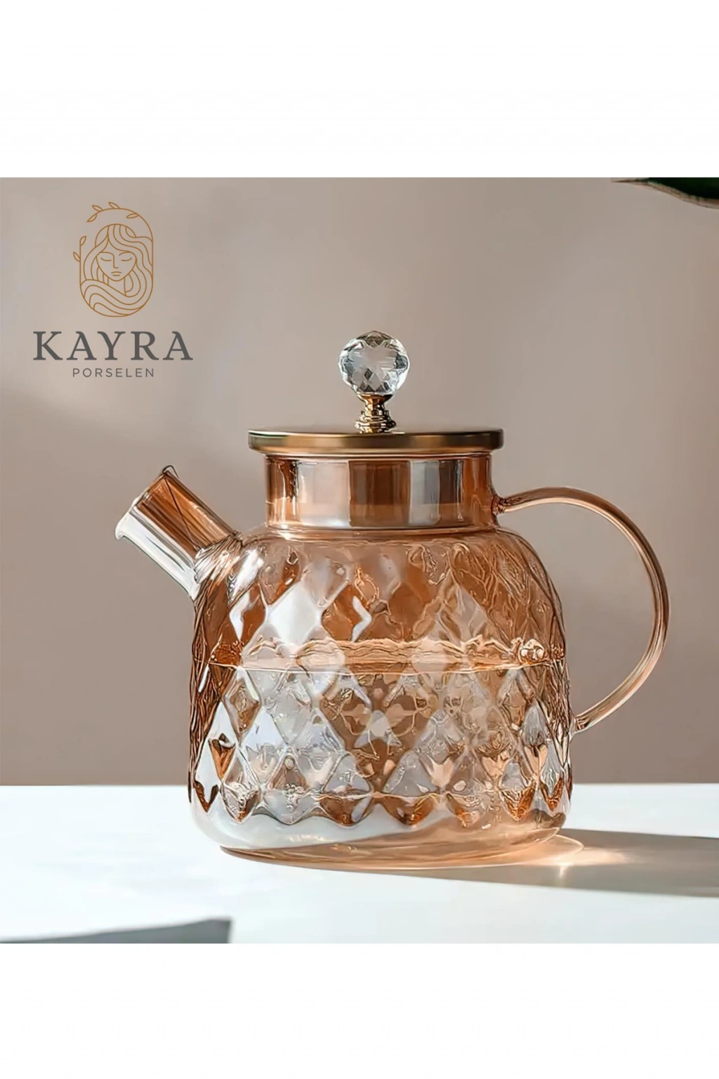 Kabartmalı Borosilikat Cam Demlik 1000ML Royaleks-CM-2006