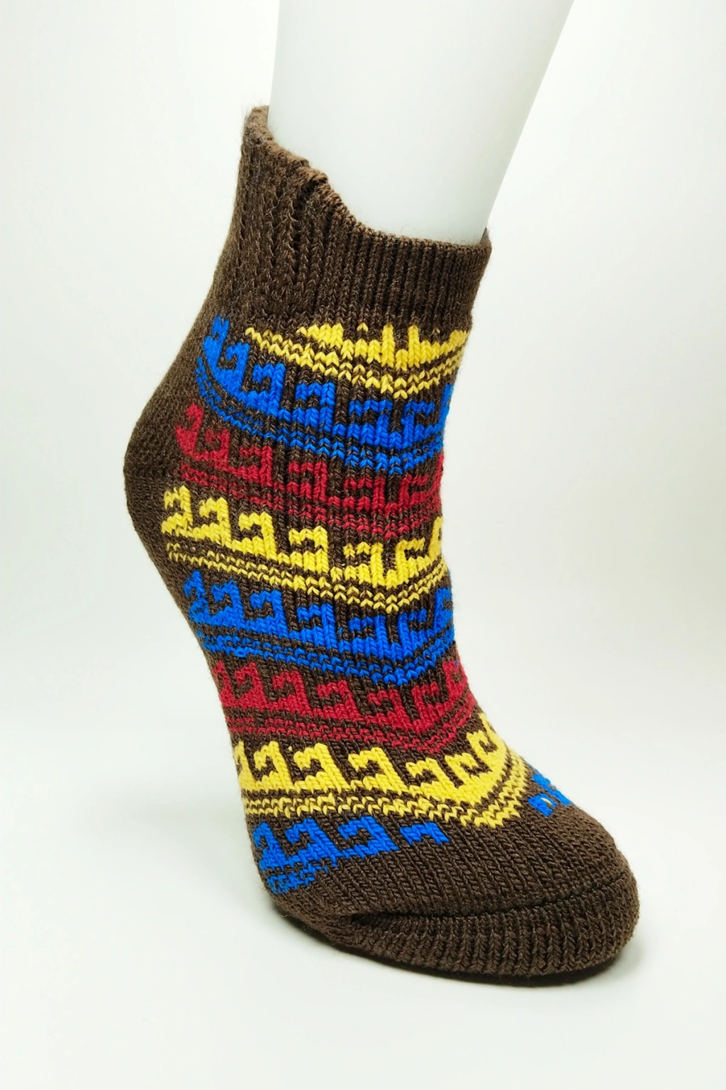 • Kalın Kışlık Kadın Soket Çorap Yünlü Havlu Ev Giyim Patik Desen 1 Kahve