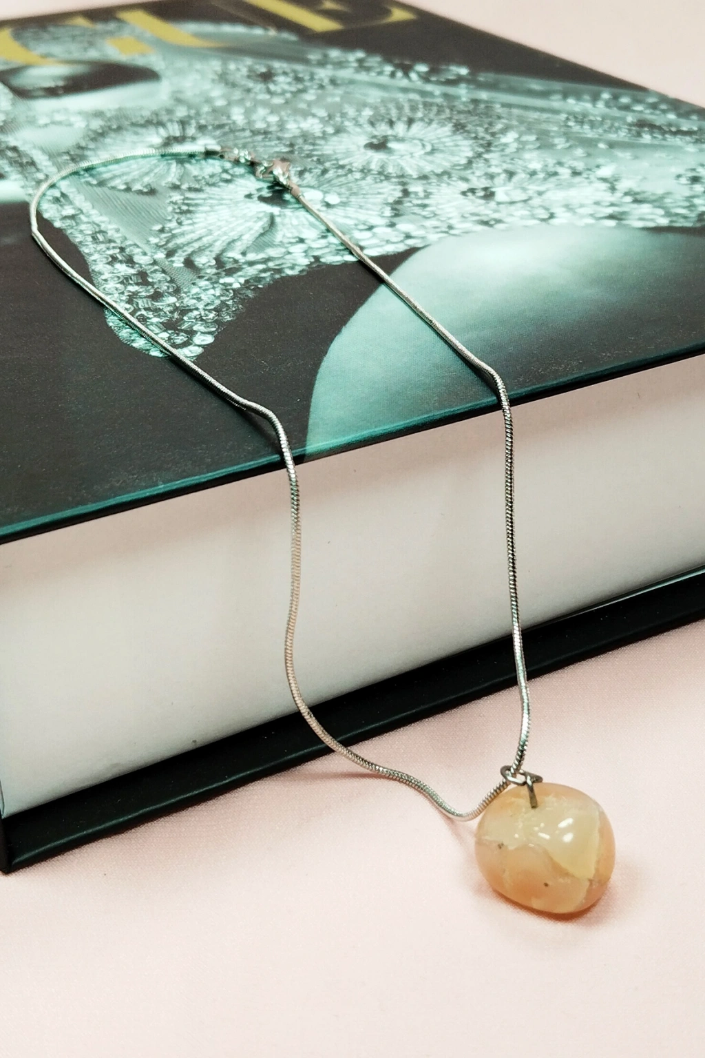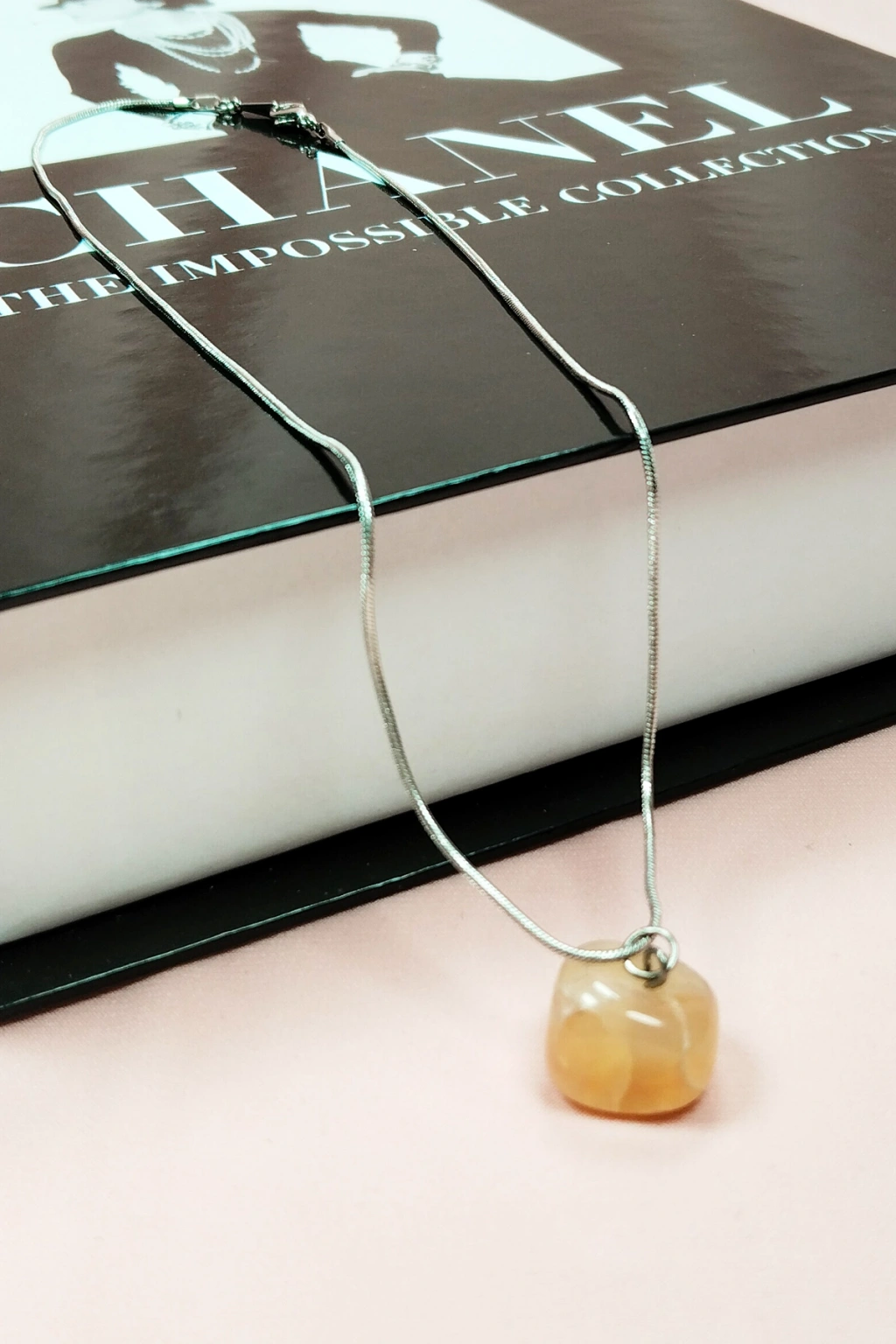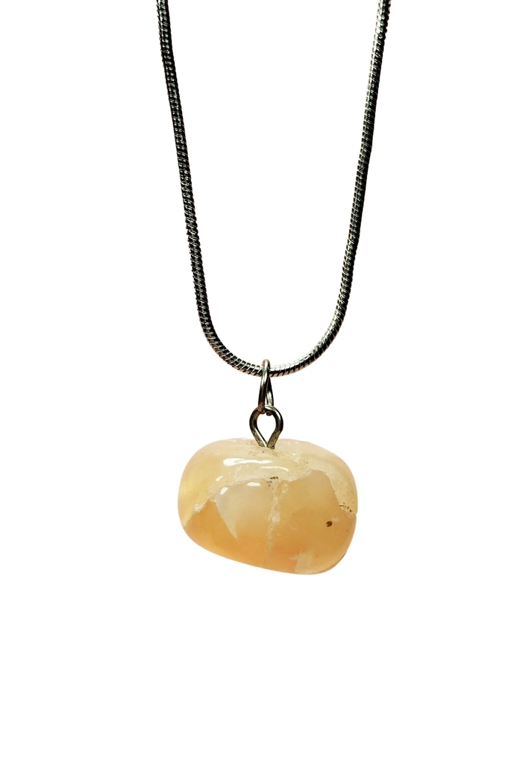 Kalsit Doğal Taşı Zincirli El Yapımı Kolye Uç: 1,5 cm Zincir: 20 cm Kutulu