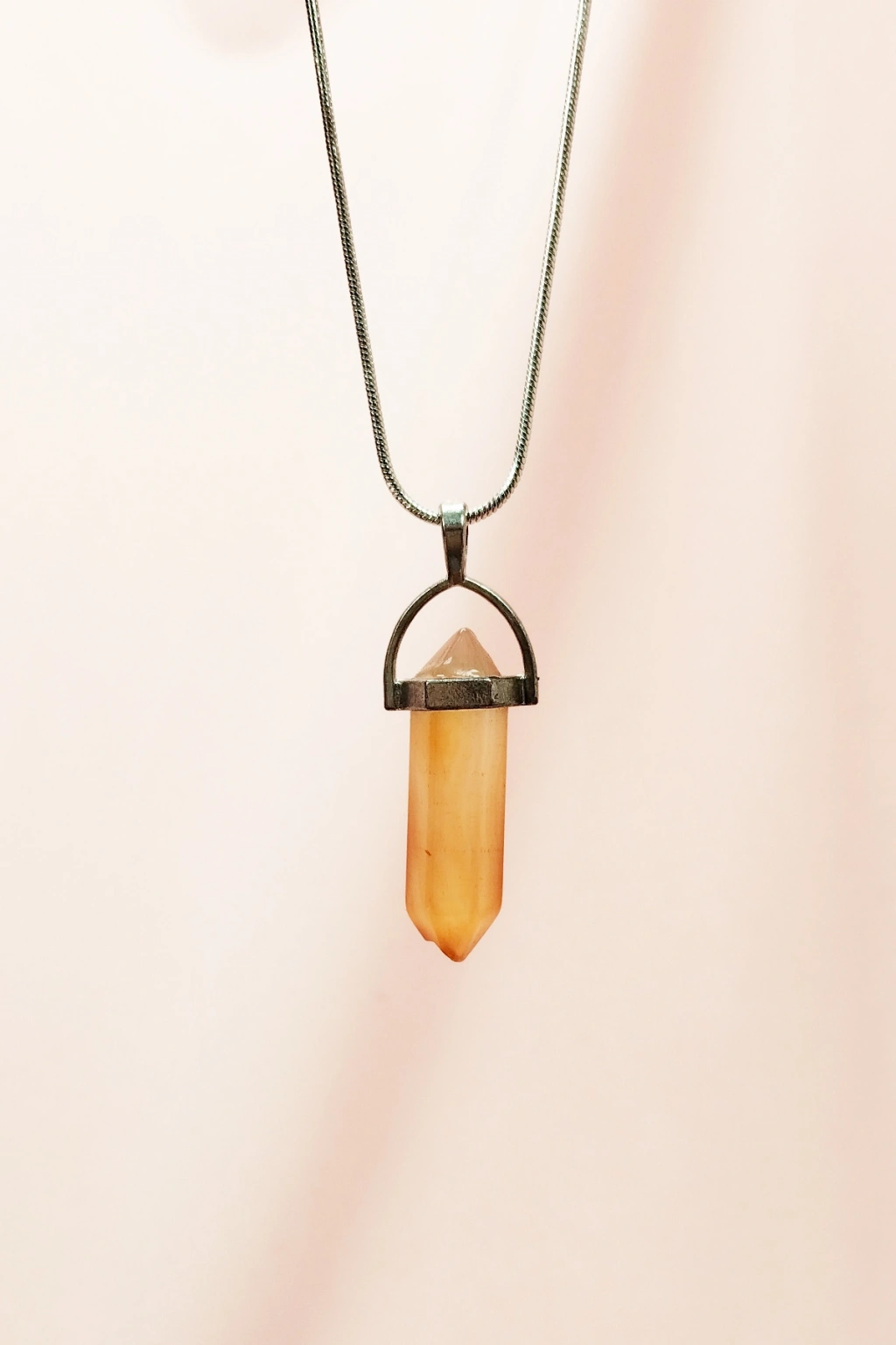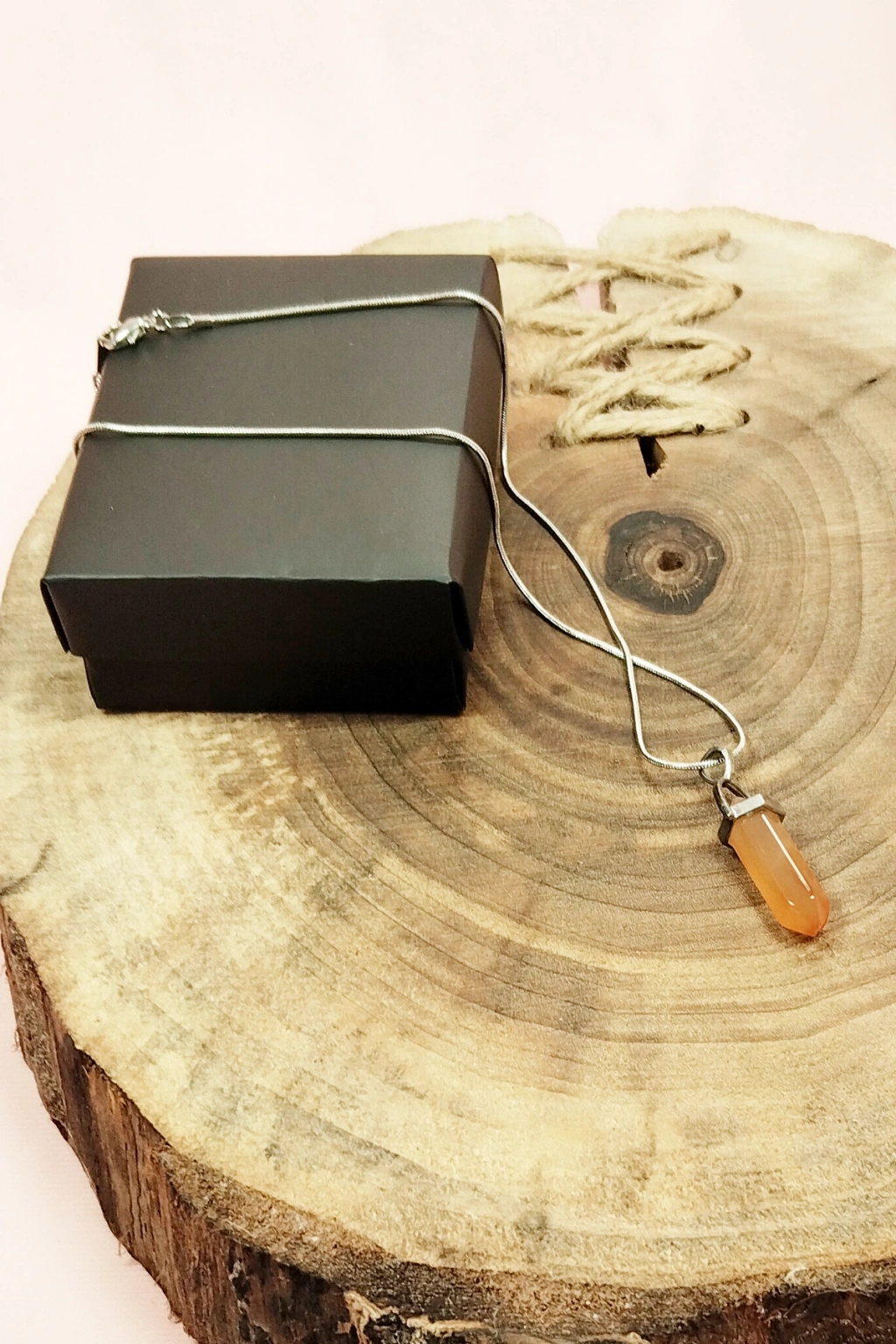 Pembe Akit Doğal Taşı Zincirli El Yapımı Tasarımlı Kolye Uç: 3,5 cm Zincir: 20 cm Kutulu